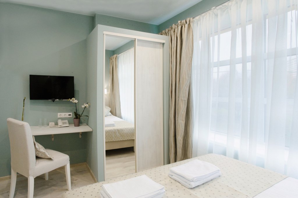 Номер уютно обставлен и оснащён необходимым, чтобы отдохнуть после долгого и насыщенного дня. Имеются телевизор и халат. Перечисленные услуги есть не во всех номерах.