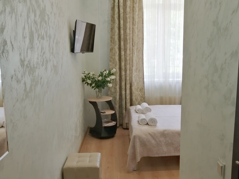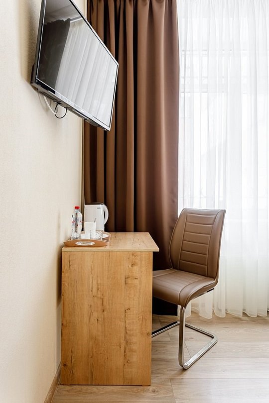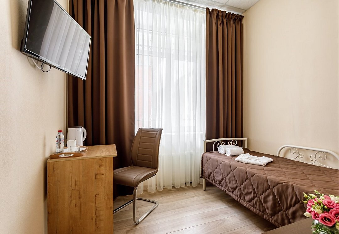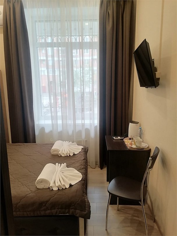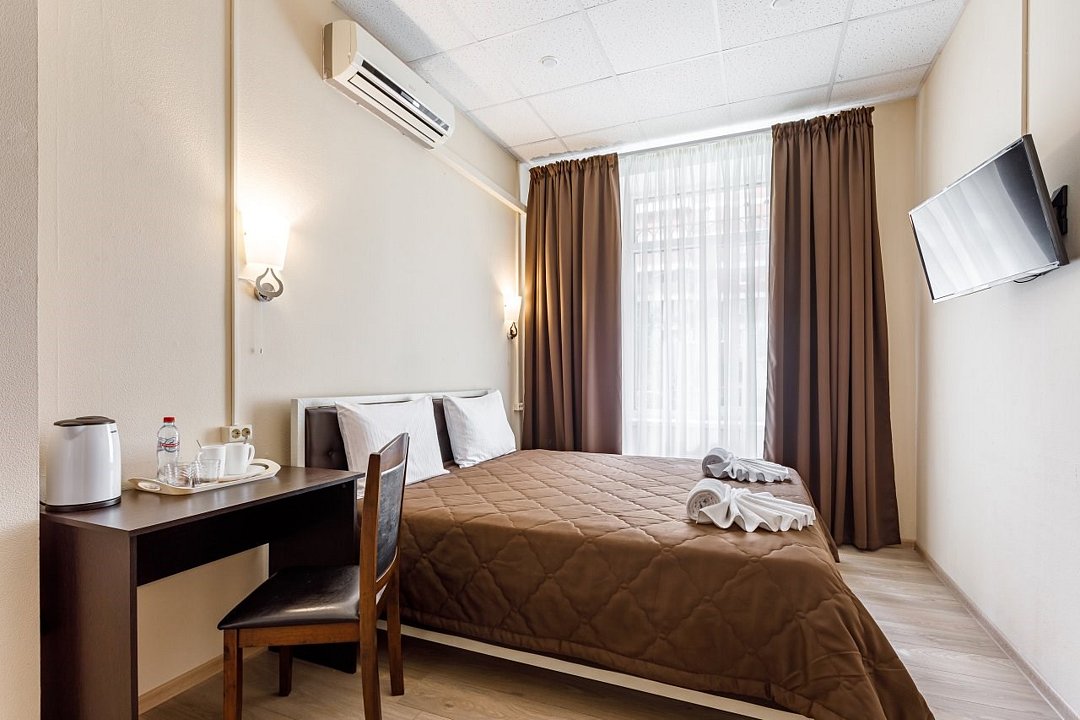 Wi-Fi, холодильник, кондиционер, фен, душевая кабина, тапочки, односпальная кровать, вешалки, отопление, вид во двор, стул, стол, туалетные средства, телевизор с плоским экраном, номер для некурящих, пуфик, можно с питомцамиВ номере