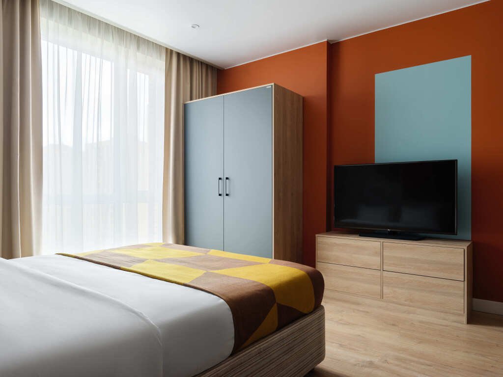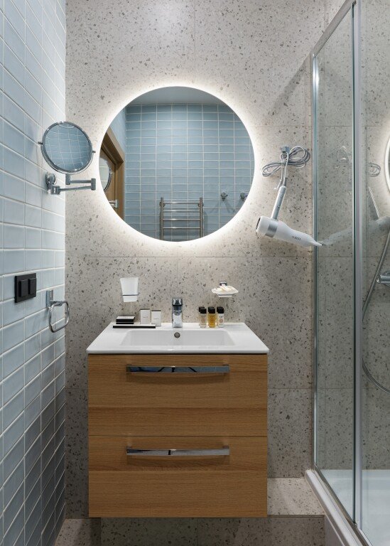 В номере есть телевизор и халат. Оснащение зависит от выбранной категории номера.