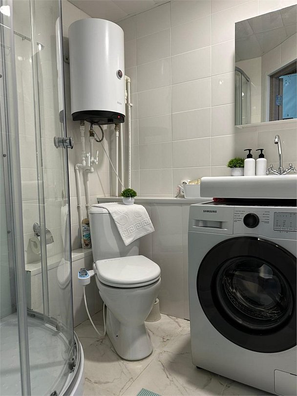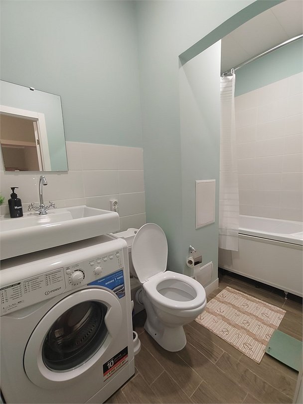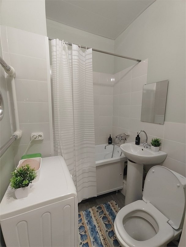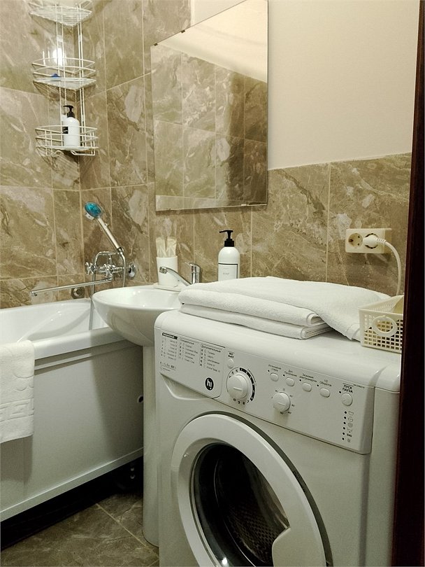 Wi-Fi, холодильник, фен, весы, электронные замки, плита для приготовления пищи, микроволновая печь, утюг, ванная комната, ванна, банные полотенца, тапочки, косметические средства, балкон, гладильная доска, шкаф для одежды, вешалки, обеденный стол, зеркало, кухня, набор посуды, стиральная машина, чайник, унитаз, питьевая вода, обеденная зона, отопление, вид на город, ламинат, кухонная посуда, стаканы, кухонная утварь, столовые приборы, стиральная машина и сушилка, внешняя ванная комната, стул, туалетные средства, туалет, сушилка для белья, диван-кровать, раскладной диван, телевизор со Smart TV, номер для некурящих, электронный консьерж 24/7, онлайн-регистрация до заезда, межкомнатная дверь, уборка номера, набор для приготовления чая и кофе, мыло, кофеварка, без питомцевВ студии