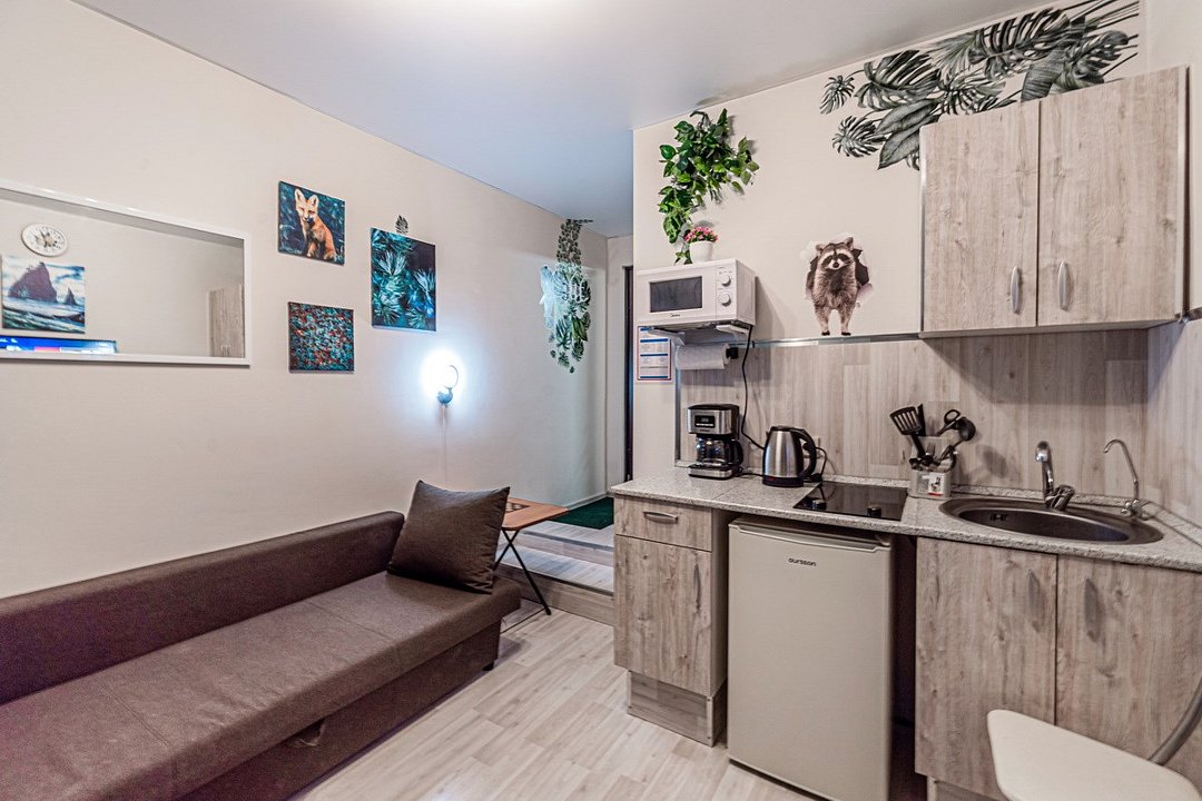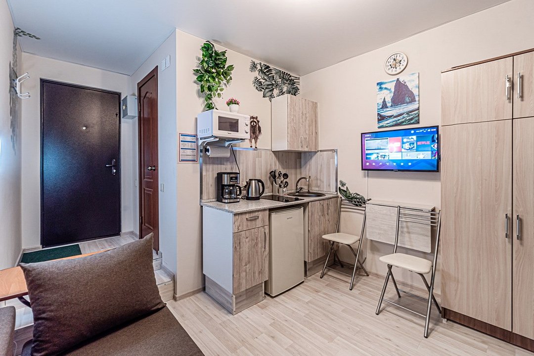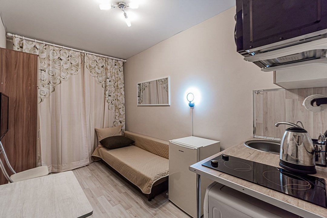 Wi-Fi, интернет, холодильник, светильник, фен, вентилятор, плита для приготовления пищи, кофемашина, микроволновая печь, утюг, ванна, банные полотенца, балкон, гладильная доска, стулья, шкаф для одежды, вешалки, журнальный столик, обеденный стол, зеркало, стиральная машина, чайник, унитаз, раковина, питьевая вода, душ, вид на город, вид во двор, кухонная посуда, столовые приборы, стиральная машина и сушилка, туалетные средства, цифровое тв, диван-кровать, раскладной диван, мини-кухня, кухонный уголок, телевизор со Smart TV, номер для некурящих, вешалки-плечики, без питомцевВ студии