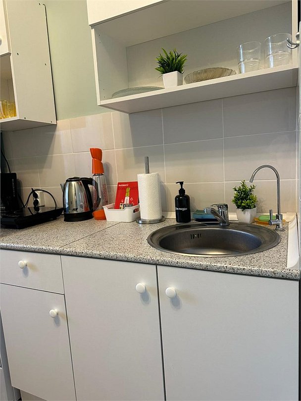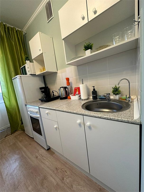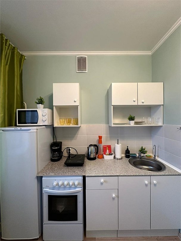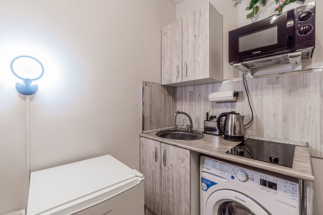 Wi-Fi, холодильник, фен, утюг, ванная комната, ванна, тапочки, гладильная доска, шкаф для одежды, обеденный стол, кухня, набор посуды, стиральная машина, чайник, унитаз, стул, тумба, туалетные средства, раскладной диван, москитная сетка, телевизор со Smart TV, номер для некурящих, морозильная камера, духовка, шапочка для душа, мыло, кофеварка, без питомцевВ студии