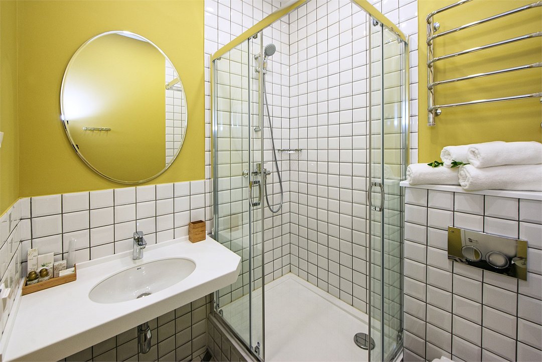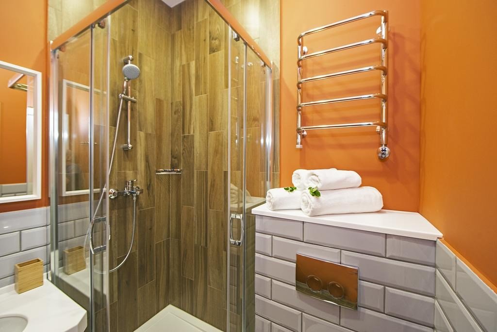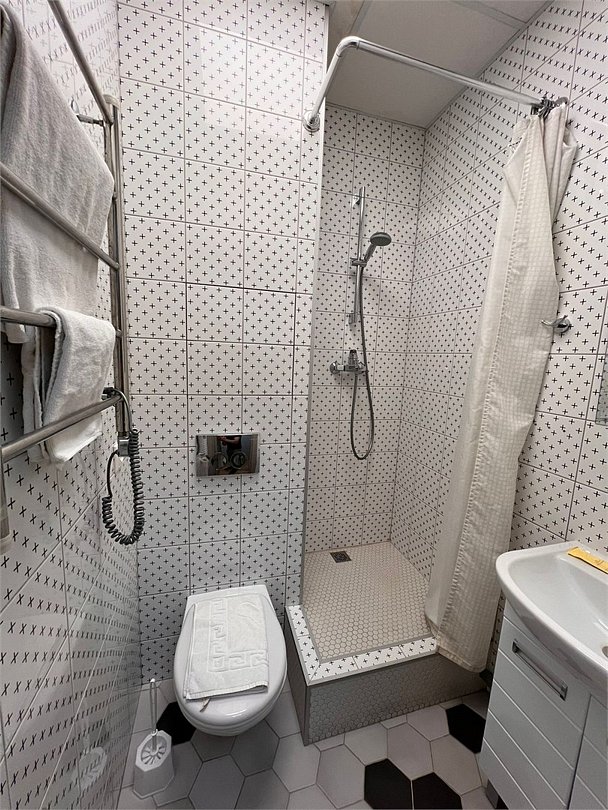 телевизор, кабельное телевидение, Wi-Fi, фен, электронные замки, душевая кабина, халаты, банные полотенца, тапочки, гигиенические средства, двуспальная кровать, шкаф для одежды, вешалки, зеркало, унитаз, отопление, душ, вид на город, вид во двор, высокие потолки, стул, туалет, телевизор со Smart TV, номер для некурящих, вешалки-плечики, мыло, онлайн-регистрацияВ гостиничном номере
