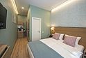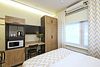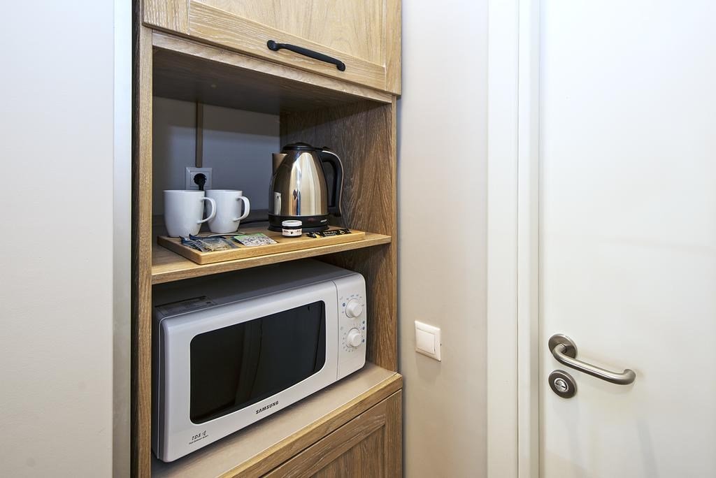 Уютный современный номер в спокойной цветовой гамме. Мебель из натурального шпона беленного дуба. В номере есть все для комфортного отдыха. Установлены две профессиональные гостиничные кровати с ортопедическим матрасом, которые по желанию гостей могут объединяться в одно спальное место размером 160х200, при этом кровати скрепляются особым образом и сверху кладется высокий наматрасник. В каждом номере у нас есть чайный набор и бутилированная вода. Этот номер идеально подойдет для долгого пребывания. В номерах данной категории, кроме СВЧ-печи и холодильника, есть небольшая кухня с плитой и необходимой посудой. В номере также имеется большой телевизор с плоским экраном 19 дюймов и большим количеством спутниковых каналов. Во всех номерах и общественных зонах предоставляется бесплатный беспроводной высокоскоростной доступ в интернет (Wi-Fi). Удобная просторная ванная комната со всем необходимым, включая одноразовые тапочки и халаты.Услуги и удобства