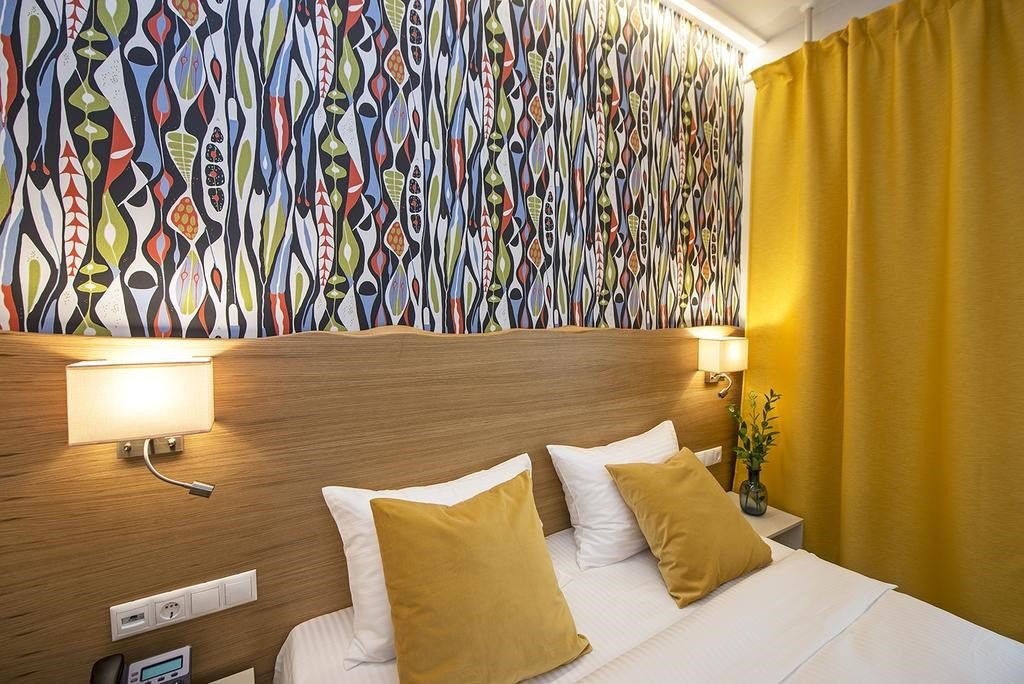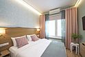 Уютный современный номер в спокойной цветовой гамме. В номере есть все для комфортного отдыха. Мебель из натурального шпона беленного дуба: вместительный гардероб, рабочий стол, посудный шкаф с набором посуды, СВЧ-печь, чайная станция, холодильник. Кровати оборудованы профессиональными ортопедическими матрасами. В номере также имеется большой телевизор с плоским экраном 19 дюймов и большим количеством спутниковых каналов. Во всех номерах и общественных зонах предоставляется бесплатный беспроводной высокоскоростной доступ в интернет (Wi-Fi). Индивидуальный санузел с душевой кабиной, феном и всем необходимым, включая одноразовые тапочки и халаты. Особой внимание мы уделили качественной шумоизоляции номеров. Ваш сон ничто не побеспокоит.Услуги и удобства