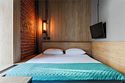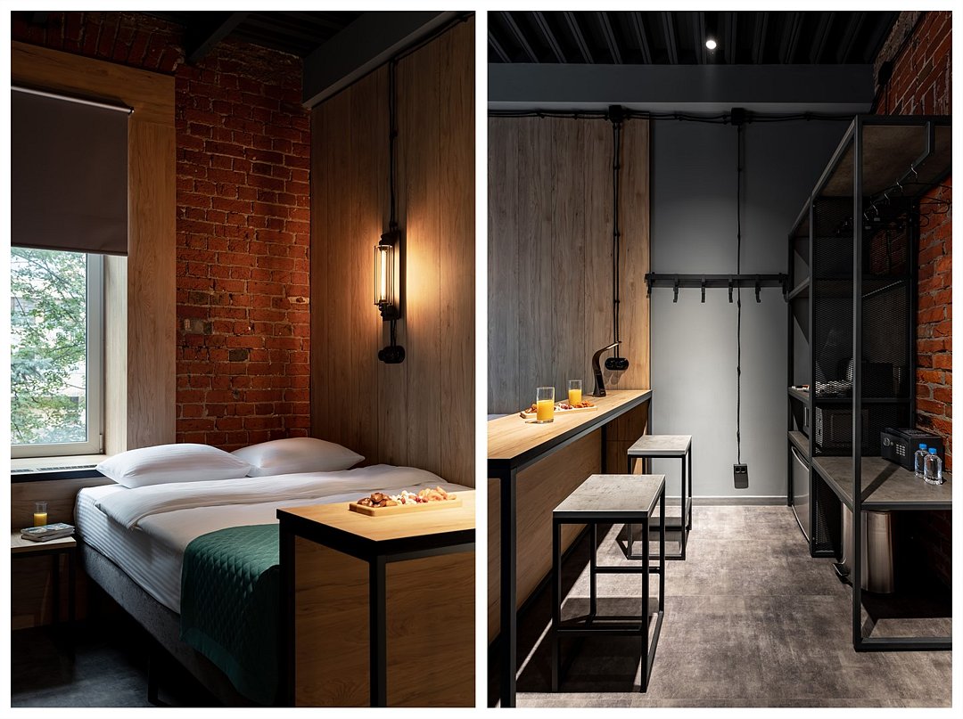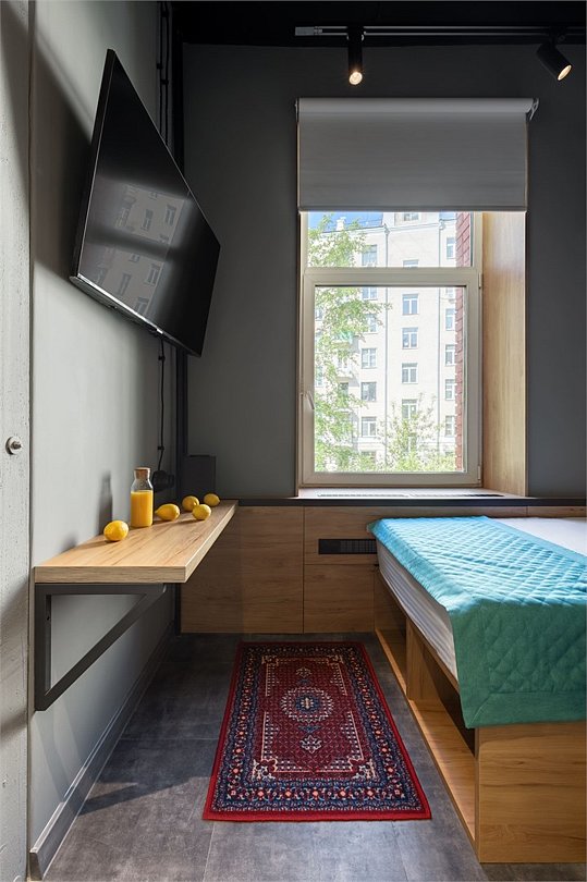 Отличительной особенностью Синглов является их двухуровневость – спальное место находится на верхнем полуэтаже. Доступный комфорт и сдержанный дизайн в стиле лофт, стильные споты создают гармоничное точечное освещение, а древесно-кирпичные тона позволят вам расслабиться за книгой или лэптопом после насыщенного дня в Москвасити. В номере есть кухонный уголок с микроволновой печью, чайником и набором посуды, а также спутниковое телевидение. Что есть в номере: -Кровать DOUBLE -Рабочая зона -Открытая система хранения вещей -Ванная комната -Фен, зеркало -Полотенца -Набор гигиенических принадлежностей -Кухонная зона с микроволновой печью, холодильником, чайником, посудой и столовыми принадлежностями -Телевизор Площадь номера – 12 м2Услуги и удобства