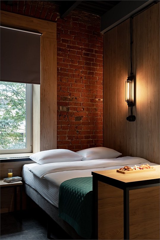 Отличительной особенностью Двухуровневого Диджитал номера является его двухуровневость – 2 спальных места находятся на нижнем и верхнем полуэтажах. Доступный комфорт и сдержанный дизайн в стиле лофт, стильные споты создают гармоничное точечное освещение, а древесно-кирпичные тона позволят вам расслабиться за книгой или лэптопом после насыщенного дня в Москвасити. В номере есть кухонный уголок с микроволновой печью, чайником и набором посуды и спутниковое телевидение. Что есть в номере: -Кровать TWIN -Умная колонка -Рабочая зона -Открытая система хранения вещей -Ванная комната -Фен, зеркало -Полотенца -Набор гигиенических принадлежностей -Кухонная зона с микроволновой печью, холодильником, чайником, посудой и столовыми принадлежностями -Телевизор Площадь номера – 12 м2Услуги и удобства