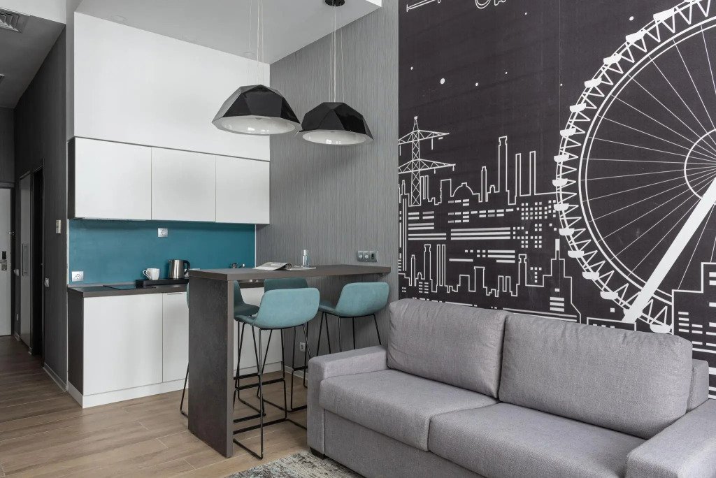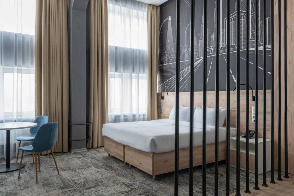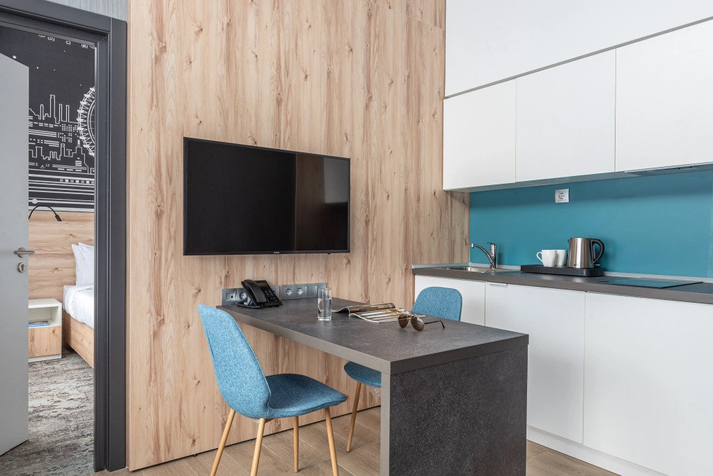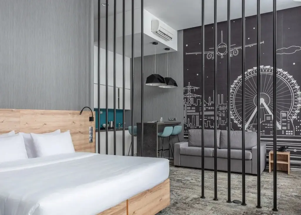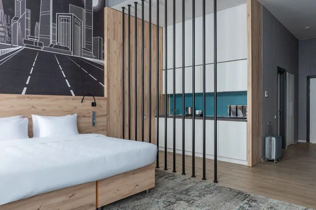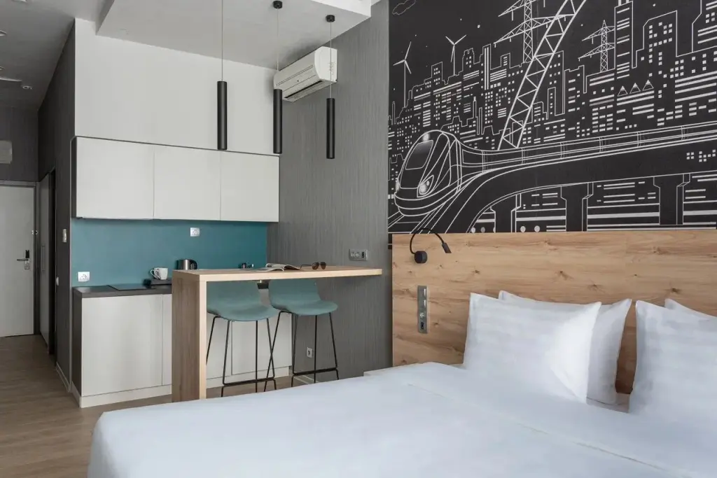 Двухместная студия Двухкомнатная с видом на город двуспальная кровать