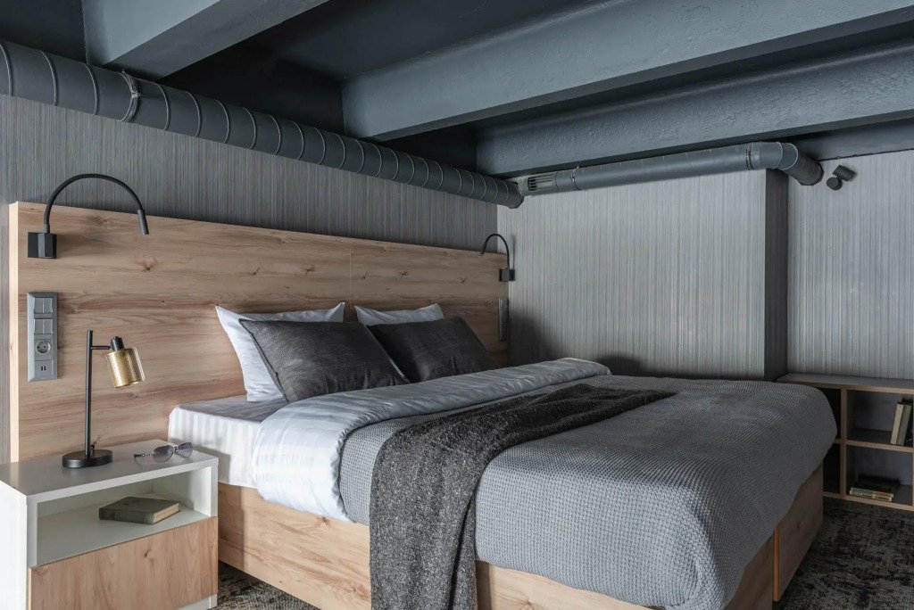 Двухместная студия Двухуровневая с видом на парк двуспальная кровать