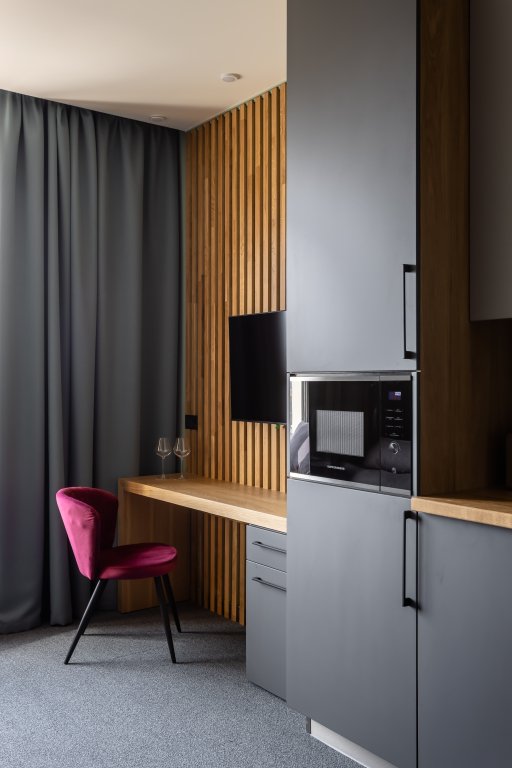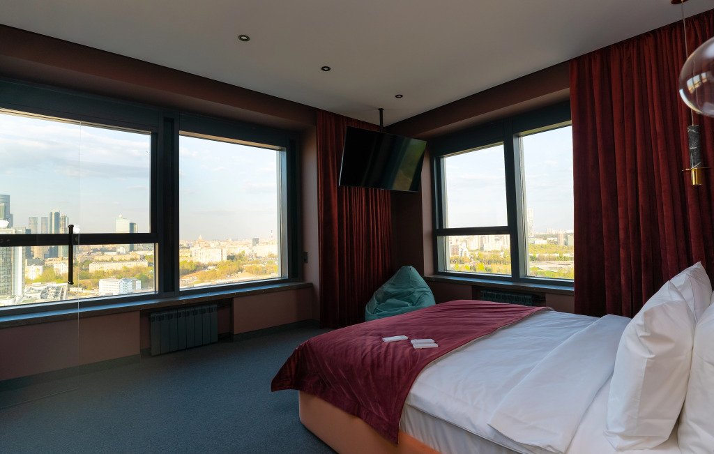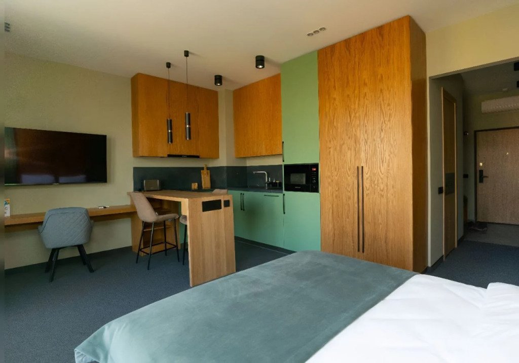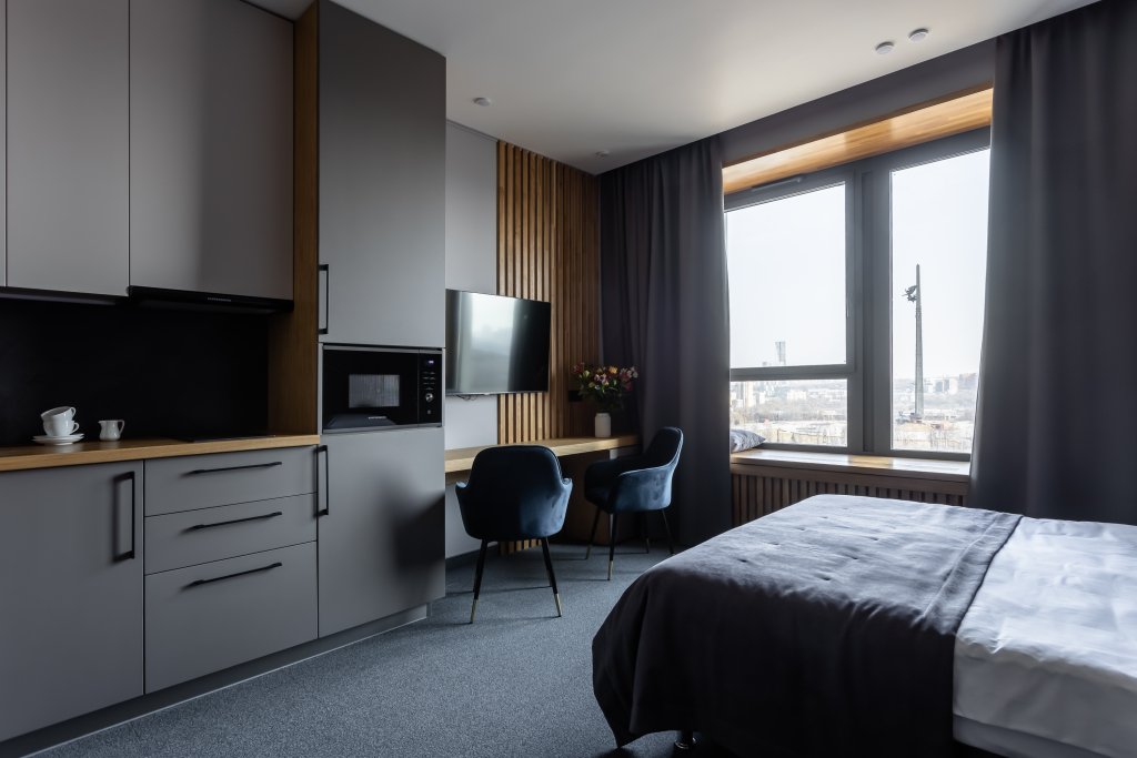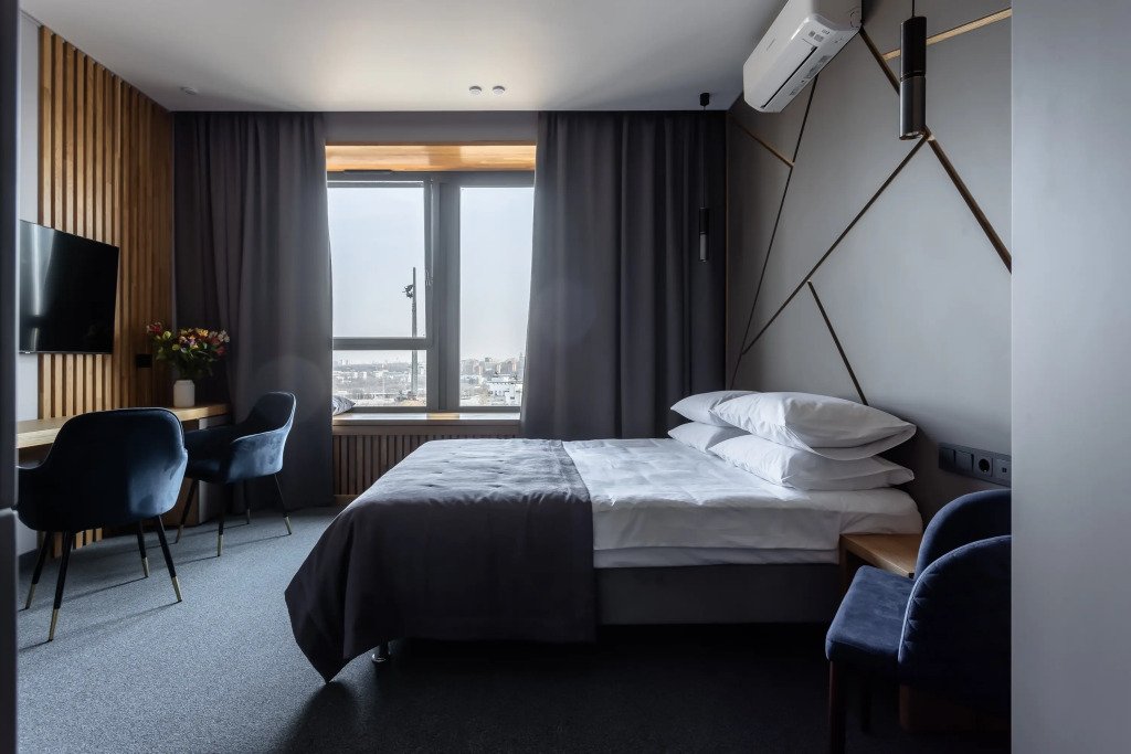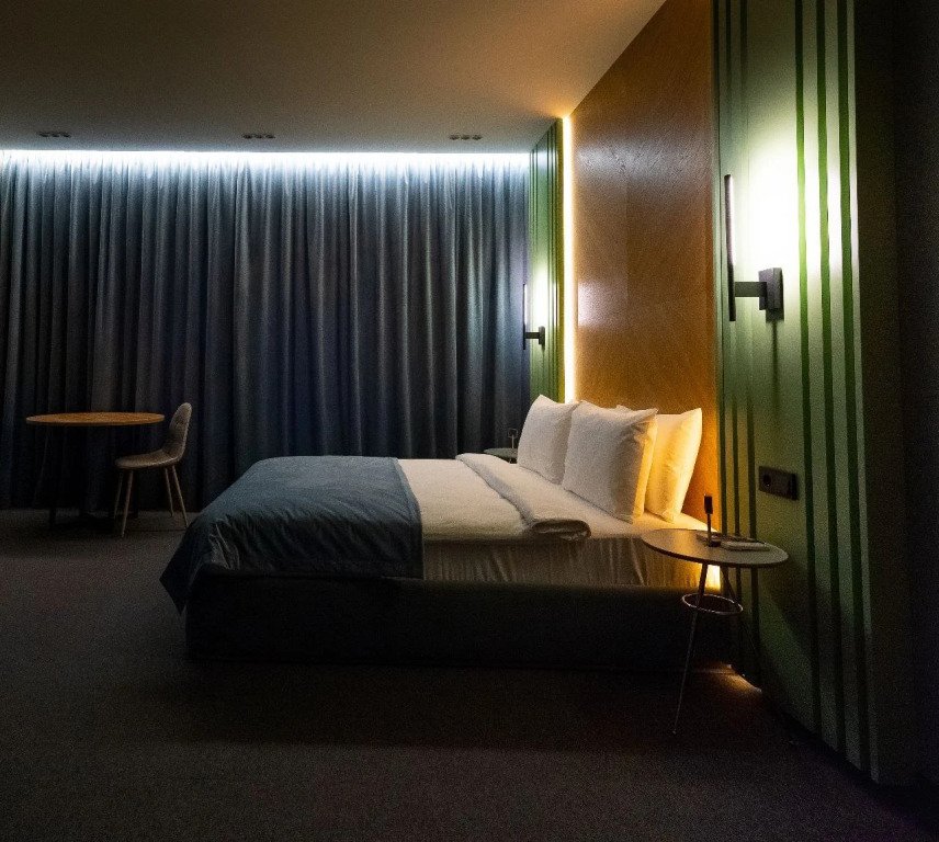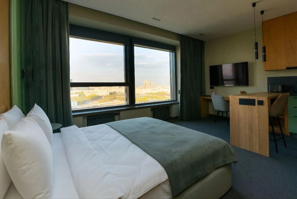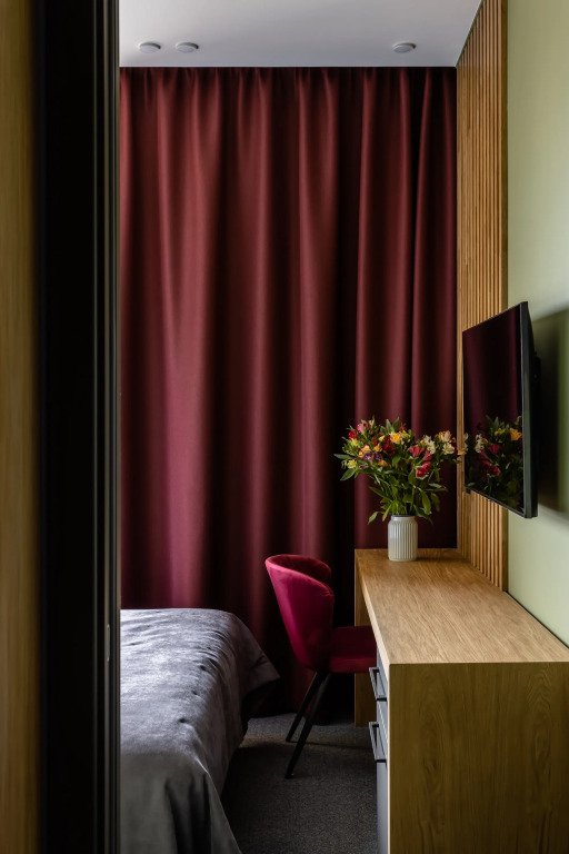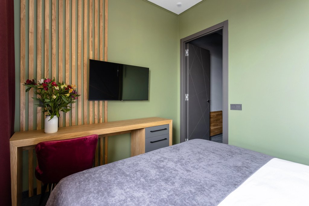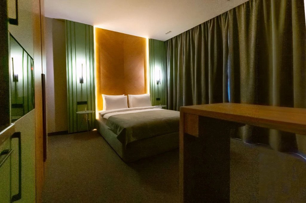 Номер уютно обставлен и оснащён необходимым, чтобы отдохнуть после долгого и насыщенного дня. Имеются телевизор и халат. Перечисленные услуги есть не во всех номерах.
