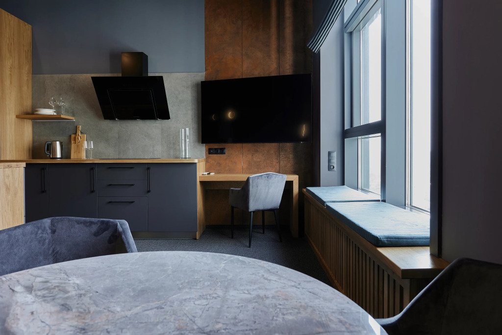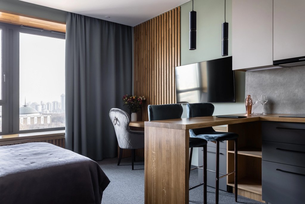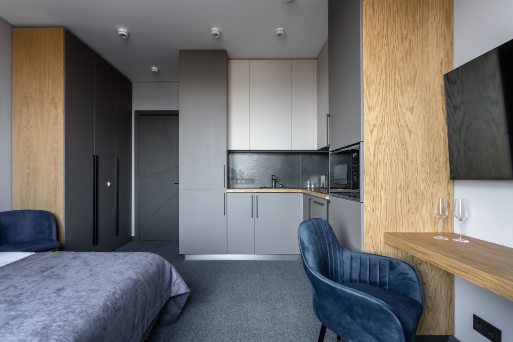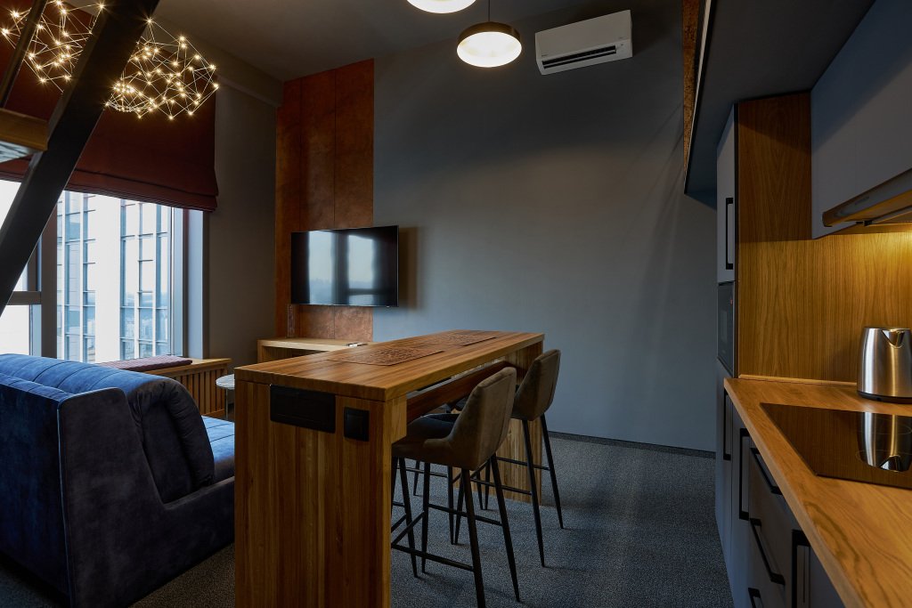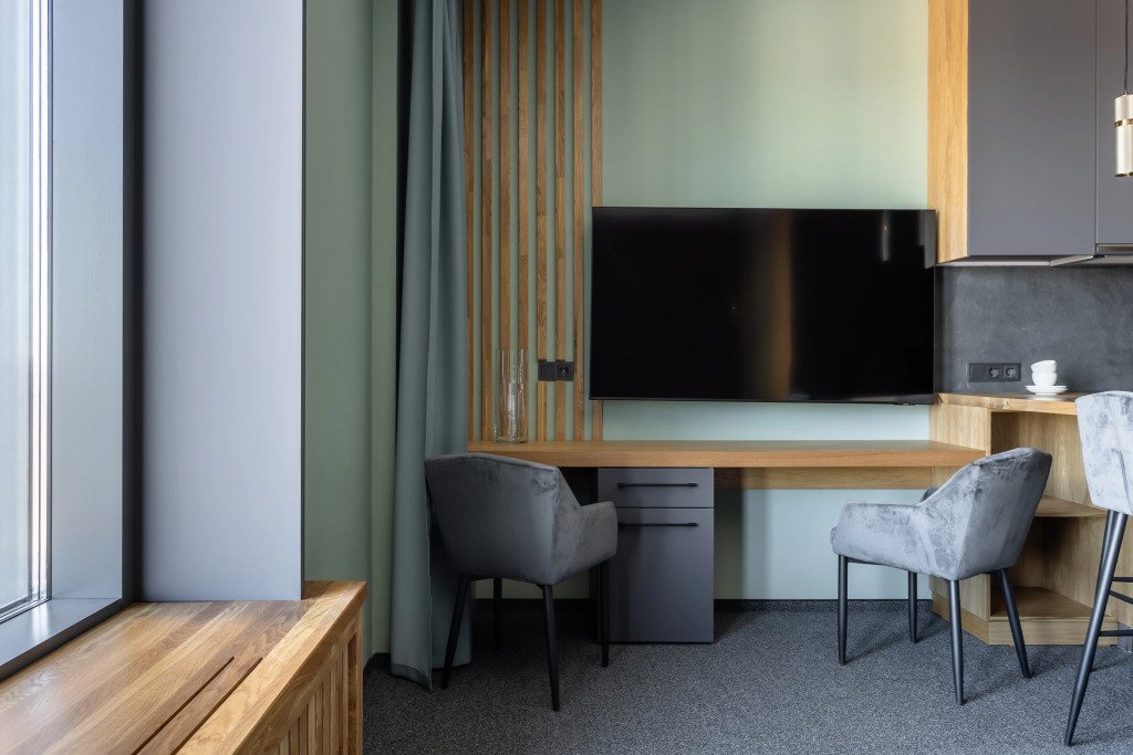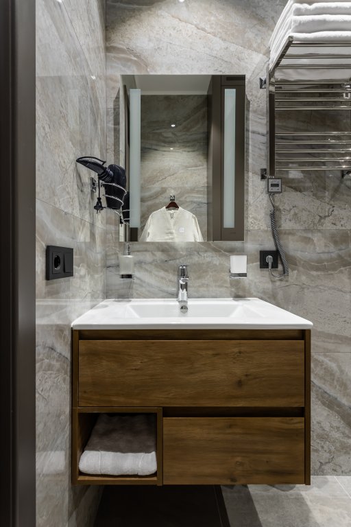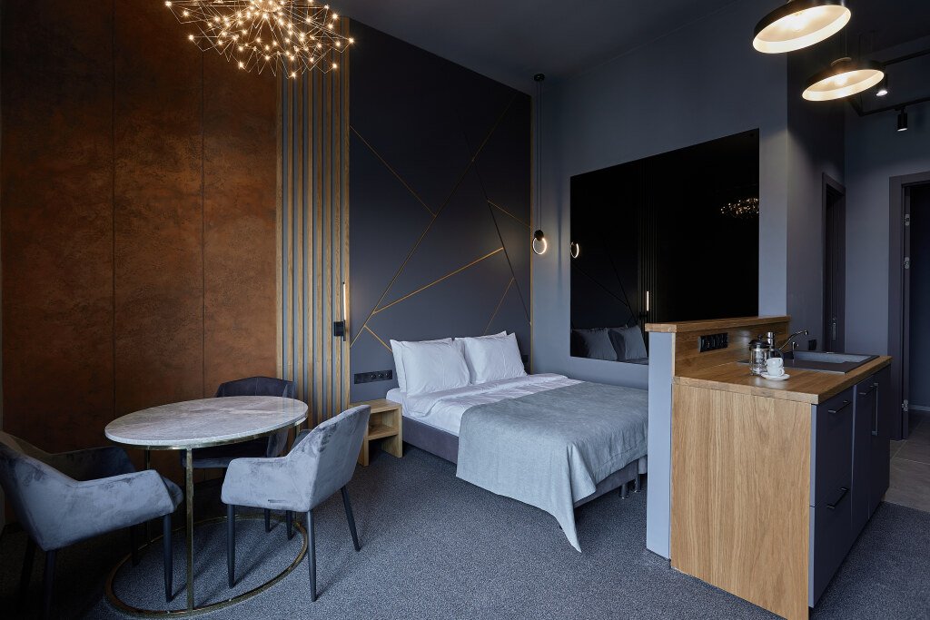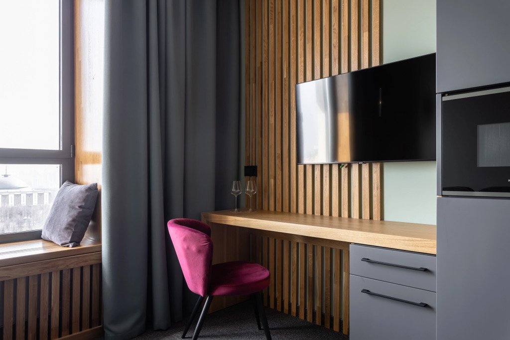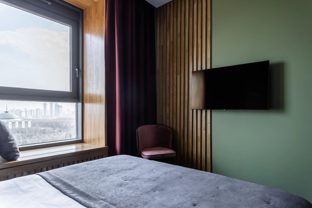 Номер уютно обставлен и оснащён необходимым, чтобы отдохнуть после долгого и насыщенного дня. Имеются телевизор и халат. Перечисленные услуги есть не во всех номерах.
