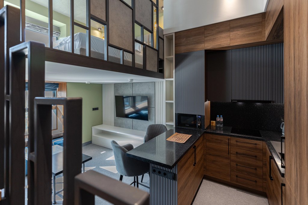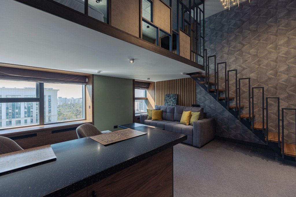 Четырёхместный дизайнерский лофт Стандарт Двухуровневый с видом на достопримечательность