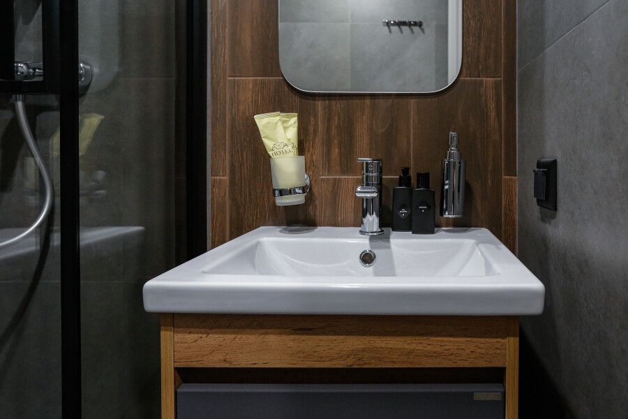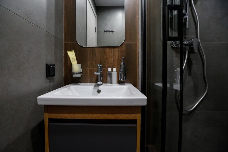 К преимуществам данного номера относятся ванная комната, оснащенная раковиной и зеркалом большого размера, а также душевой зоной с тропическим душем. Для вашего удобства имеются фен для волос, качественные косметические принадлежности, набор полотенец и тапочки.
