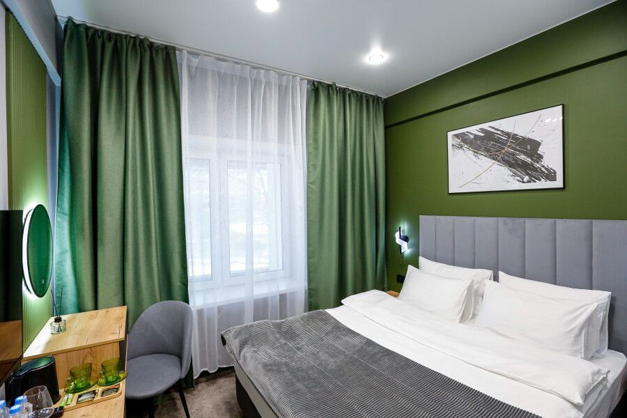 Высокие окна обеспечивают номер естественным освещением, а большая удобная кровать с качественным матрасом гарантируют вам крепкий и восстанавливающий силы сон.