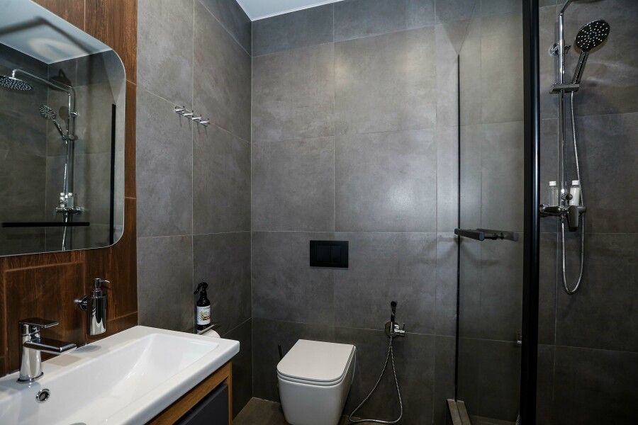 К вашим услугам отдельная ванная комната с душевой кабиной и туалетом, гигиенический душ, фен для волос, косметические принадлежности, набор полотенец и тапочки.