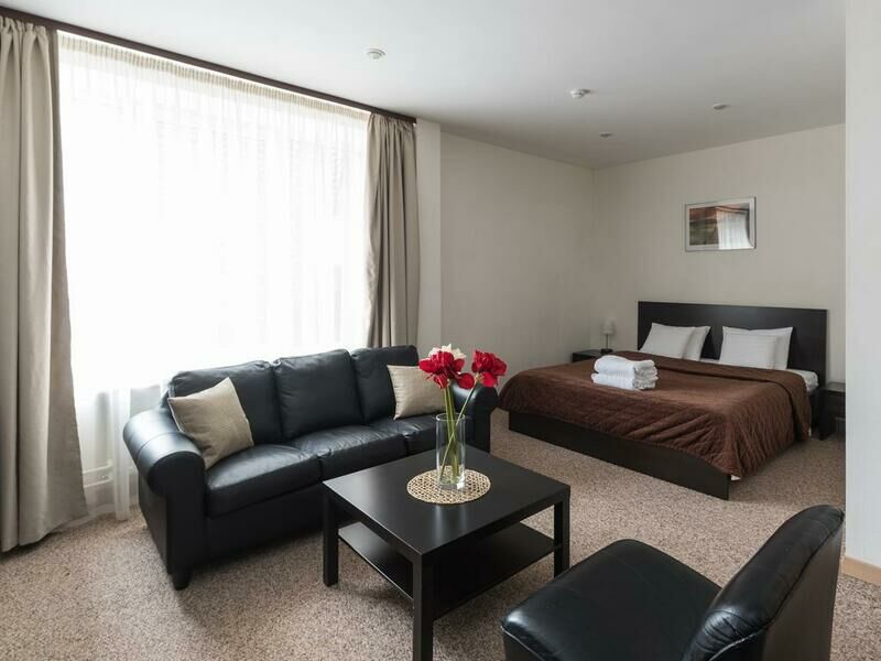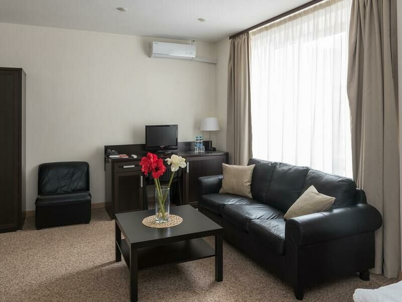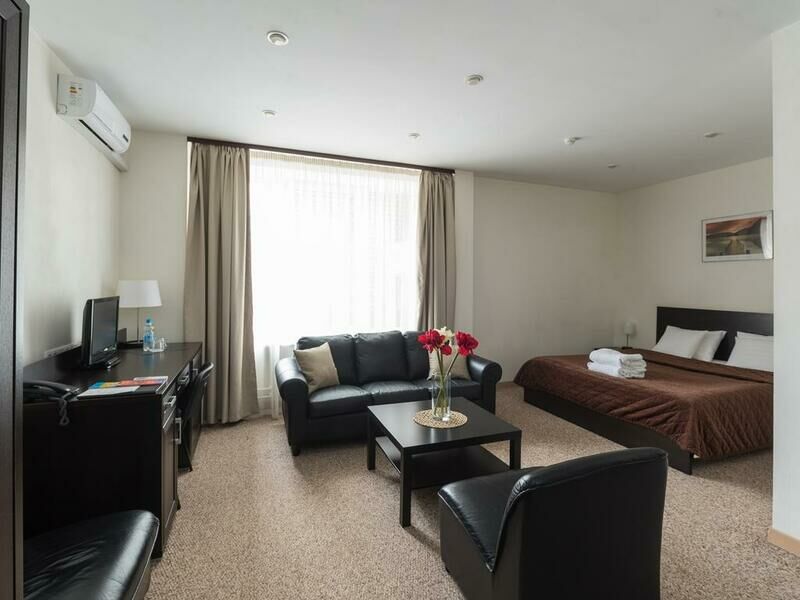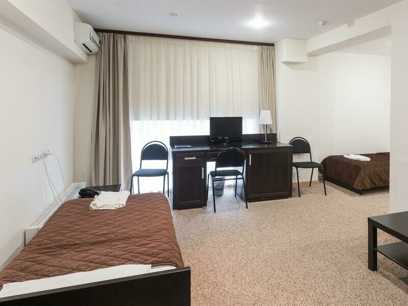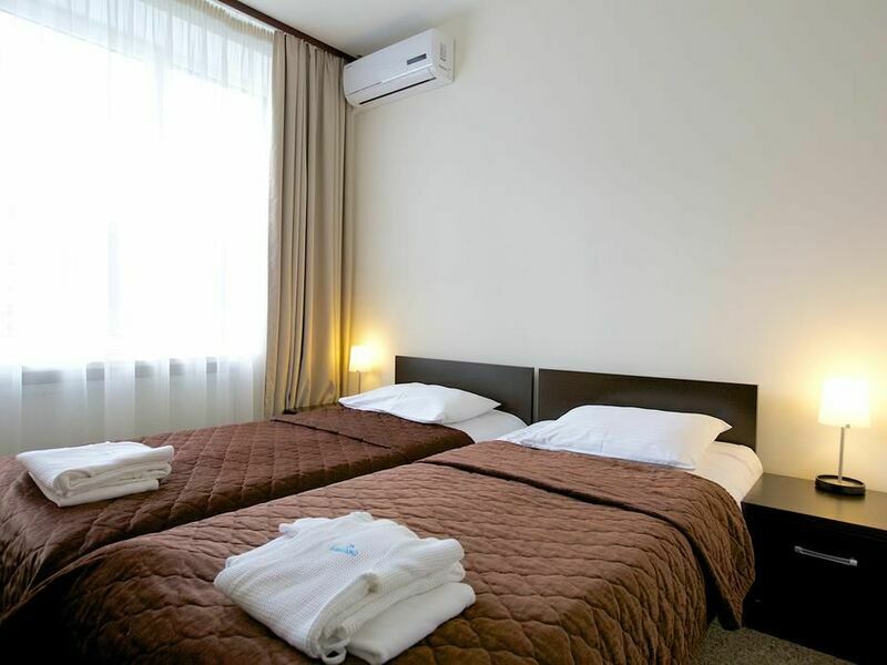 Семиэтажный корпус отеля, оснащенный лифтом, возвышается на закрытой охраняемой территории, расположенной на пересечении Ленинградского проспекта с улицей Лизы Чайкиной. Гостей ожидают более 120 комфортабельных номеров категории Стандарт, Супериор, Студио. В ряде номеров установлена система общего кондиционирования, другие оснащены отдельным кондиционером, везде есть санузел с ванной, бытовая техника — фен, телевизор, холодильник.