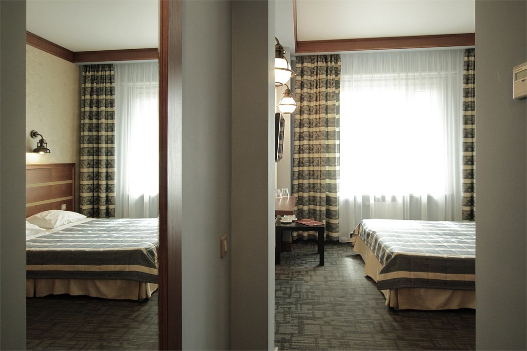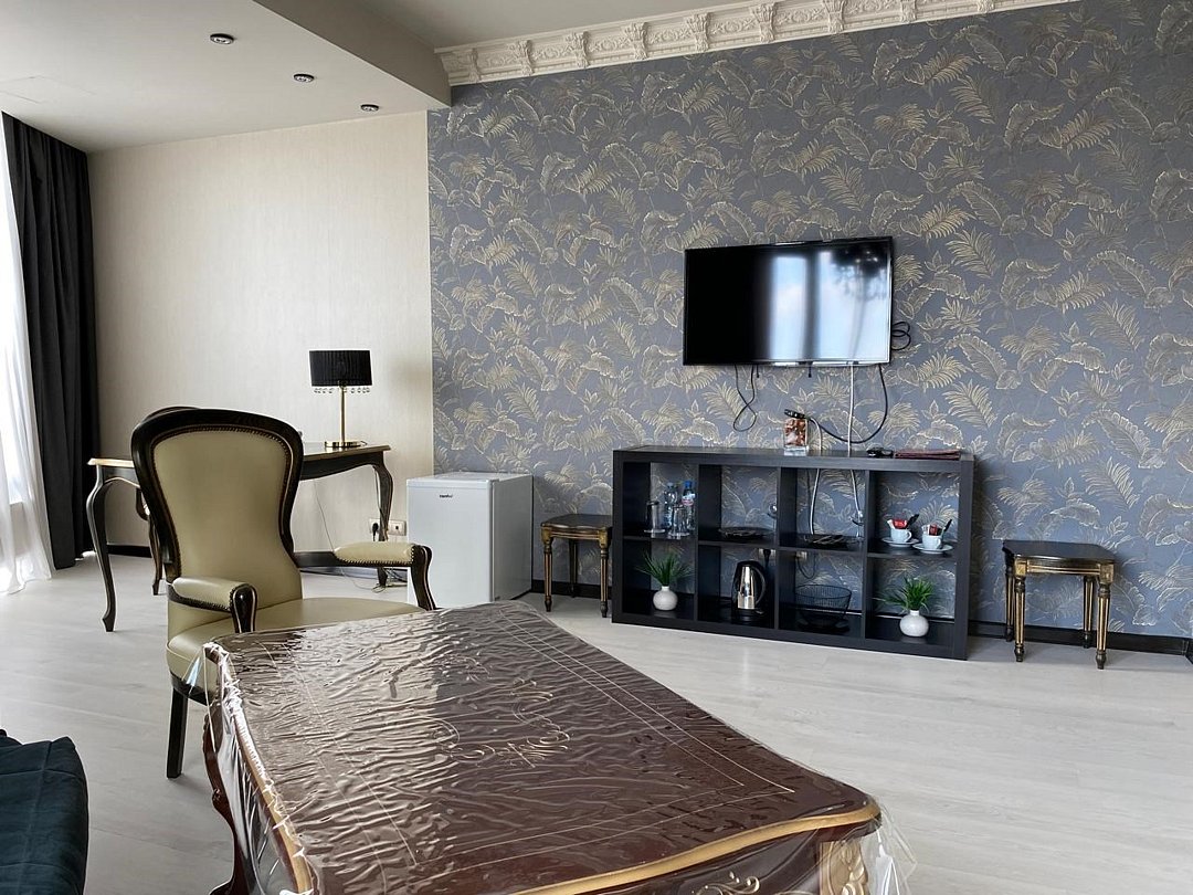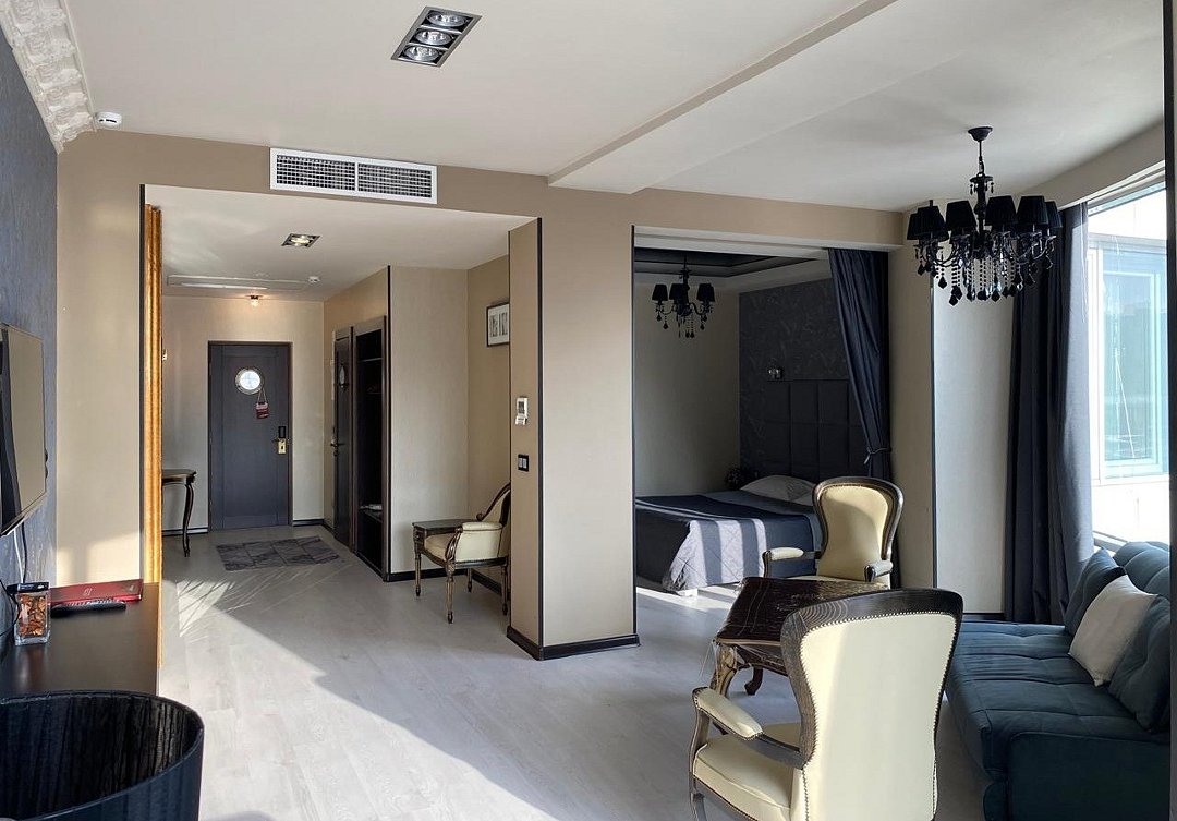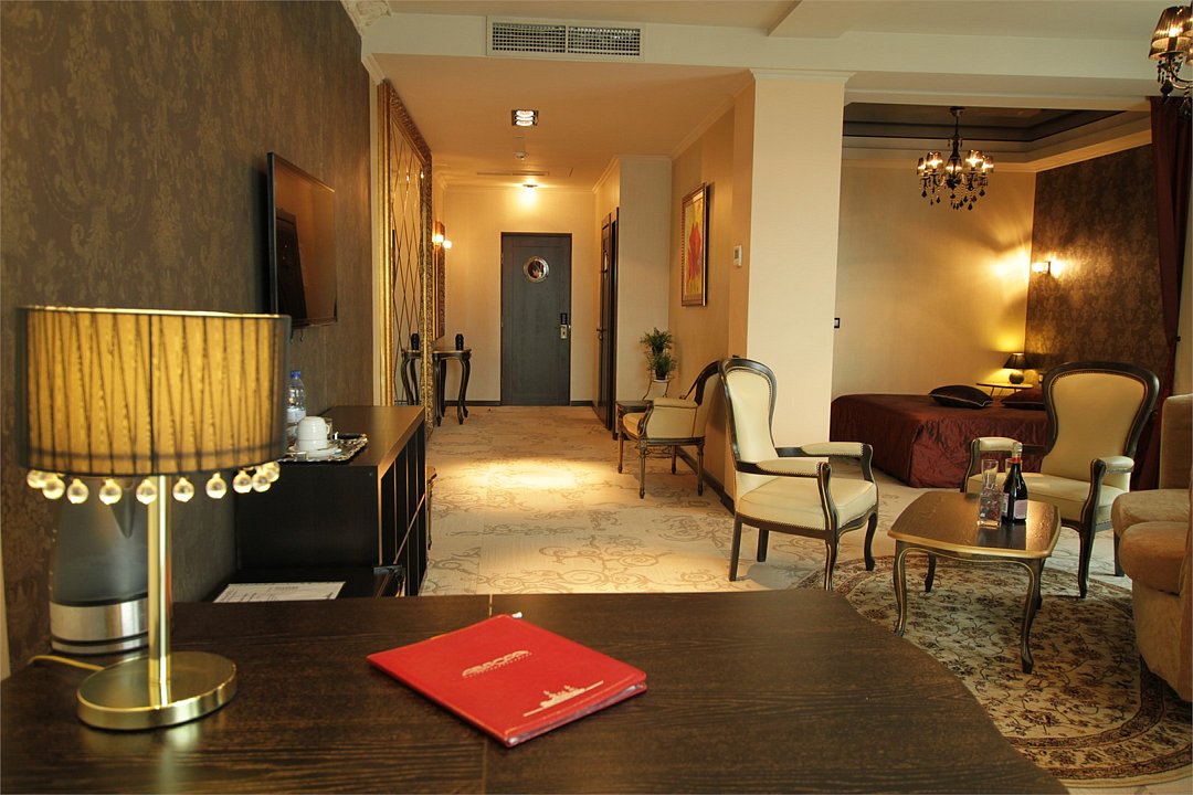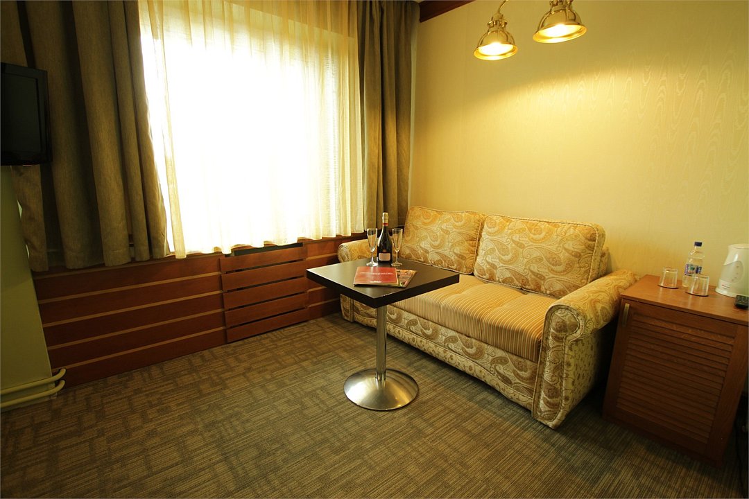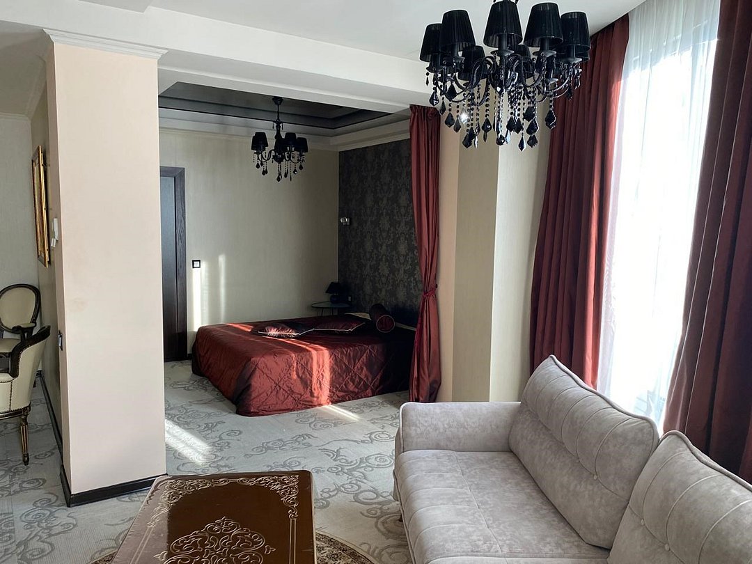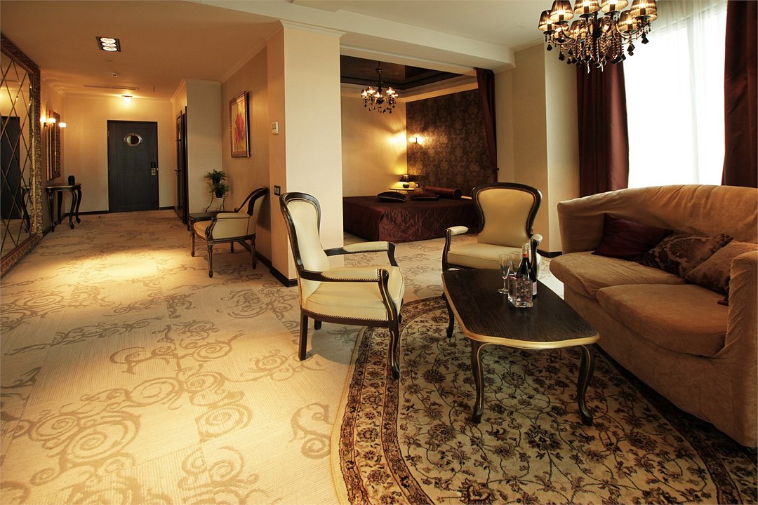Номер Люкс (Luxe) площадью 55 м2: просторный, комфортабельный, с гостиной и спальней. Номер оформлен в элегантном стиле. Стоимость номера рассчитывается от количества гостей, минимальная стоимость на 1-2 человек. Максимальная вместимость – 4 человека плюс 1 место (раскладушка) за доп плату.Услуги и удобства