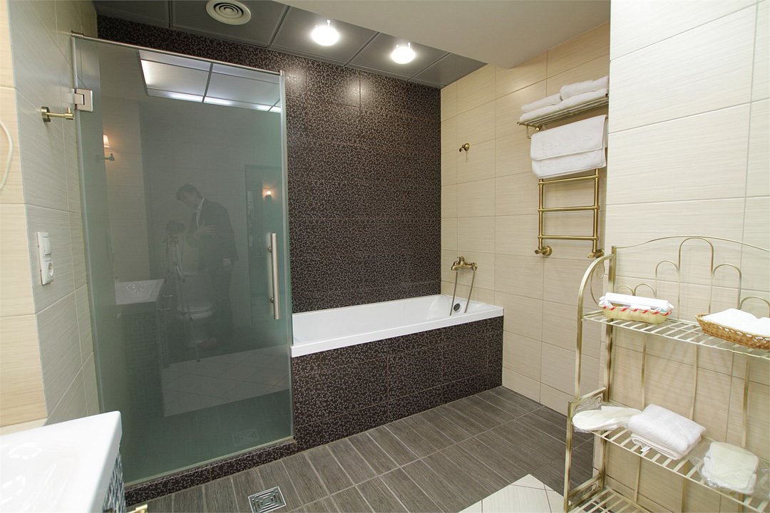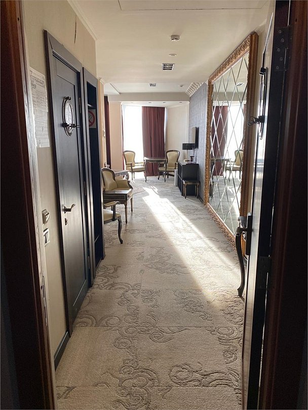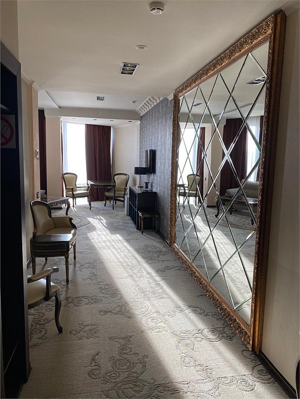 Wi-Fi, интернет, телефон, кондиционер, система климат-контроля, светильник, настольные лампы, фен, электронные замки, утюг, душевая кабина, ванна, санузел, халаты, банные полотенца, тапочки, гигиенические средства, двуспальная кровать, гладильная доска, диван, тумбы, шкаф для одежды, вешалки, журнальный столик, письменный стол, зеркало, пуфики, ковер, эксклюзивная мебель, чайный набор, обслуживание номеров, сейф, чайник, унитаз, раковина, мягкая мебель, ковровое покрытие, отопление, вид на город, кулер на этаже, кресло, центральное кондиционирование, стаканы, стул, туалетный столик, туалетные средства, панорамные окна, цифровое тв, внутренний телефон, телевизор с плоским экраном, мини-холодильник, шкаф-купе, номер для некурящих, без питомцевВ номере