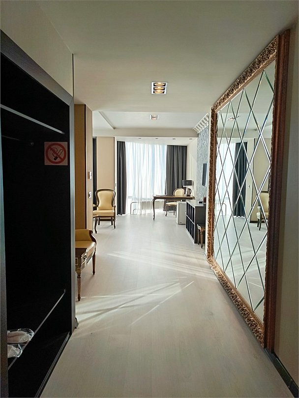 Wi-Fi, интернет, телефон, кондиционер, система климат-контроля, светильник, настольные лампы, фен, электронные замки, утюг, душевая кабина, ванна, санузел, халаты, банные полотенца, тапочки, гигиенические средства, двуспальная кровать, гладильная доска, диван, тумбы, стулья, шкаф для одежды, вешалки, журнальный столик, письменный стол, зеркало, пуфики, чайный набор, обслуживание номеров, сейф, чайник, унитаз, раковина, мягкая мебель, отопление, вид на город, кулер на этаже, кресло, центральное кондиционирование, ламинат, стаканы, стол, туалетный столик, туалетные средства, панорамные окна, цифровое тв, внутренний телефон, телевизор с плоским экраном, мини-холодильник, шкаф-купе, номер для некурящих, мыло, затемняющая штора, зеркало в полный рост, без питомцевВ номере
