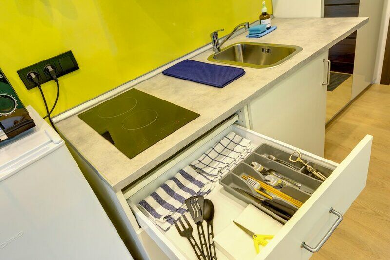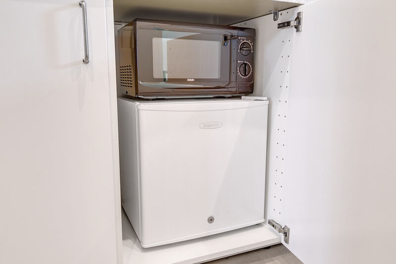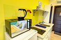 В числе удобств кондиционер, телевизор с плоским экраном, стиральная машина, чайник и мини-кухня.