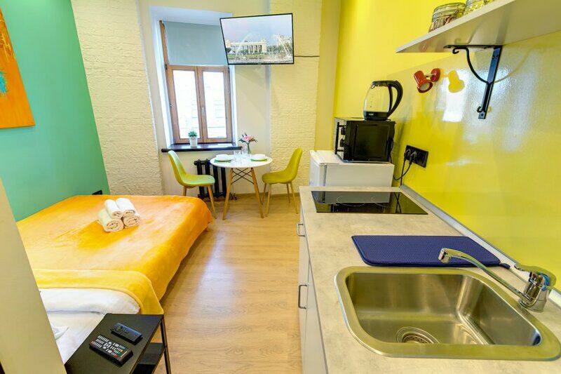 Путешествие по работеСтильные апартаменты в центреОстановились на ночь в этих апартаментах. Все чисто и стильно. Шикарная большая кровать, чистое постельное белье. Микроволновка, чайник, холодильник, были чай и сахар. Предоставили нужные командировочные документы для бухгалтерии. Все понравилось.