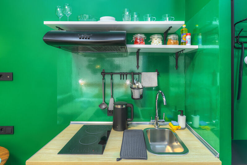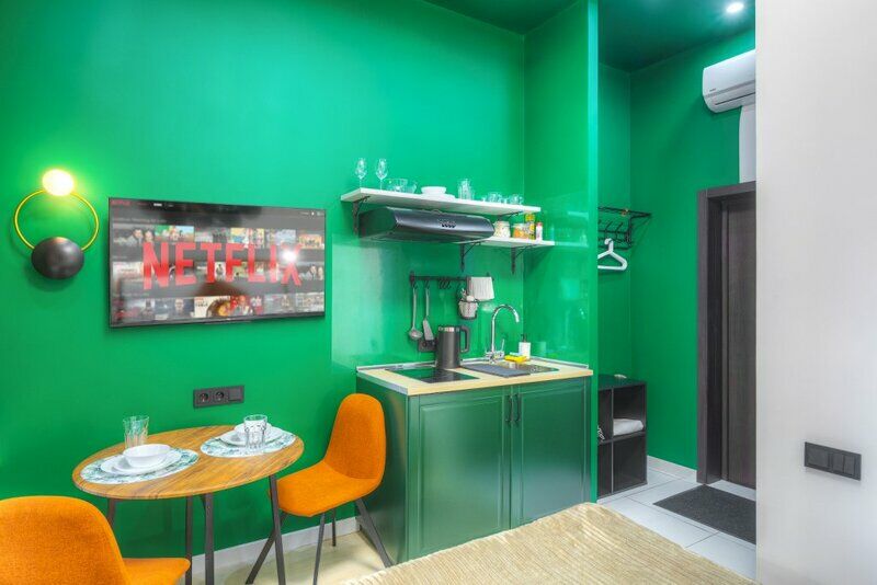 В распоряжении гостей полностью оборудованная кухня и собственная ванная комната с душем, феном и тапочками. В апартаментах установлены кондиционер и телевизор с плоским экраном. В числе прочих удобств — микроволновая печь, холодильник, плита и чайник.