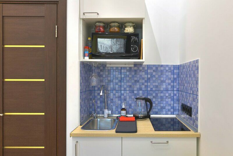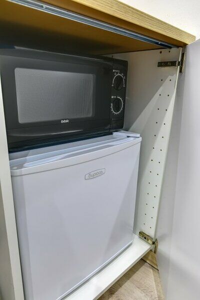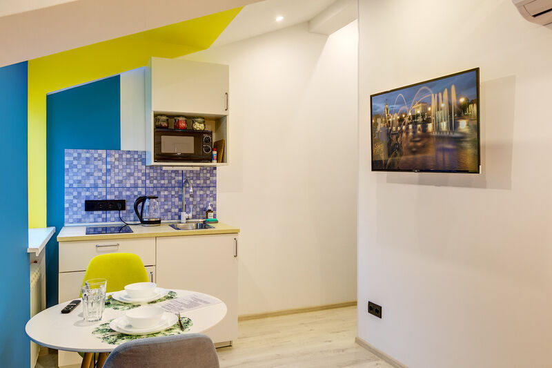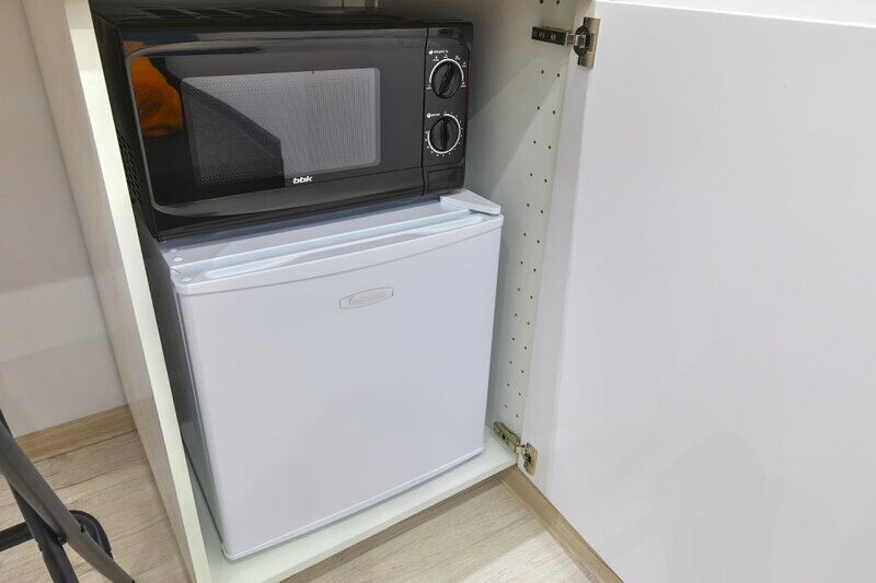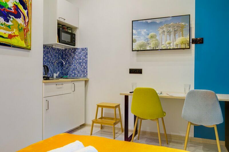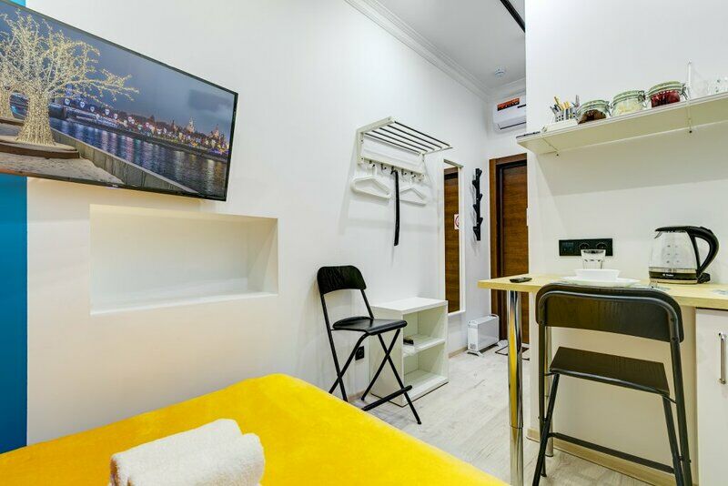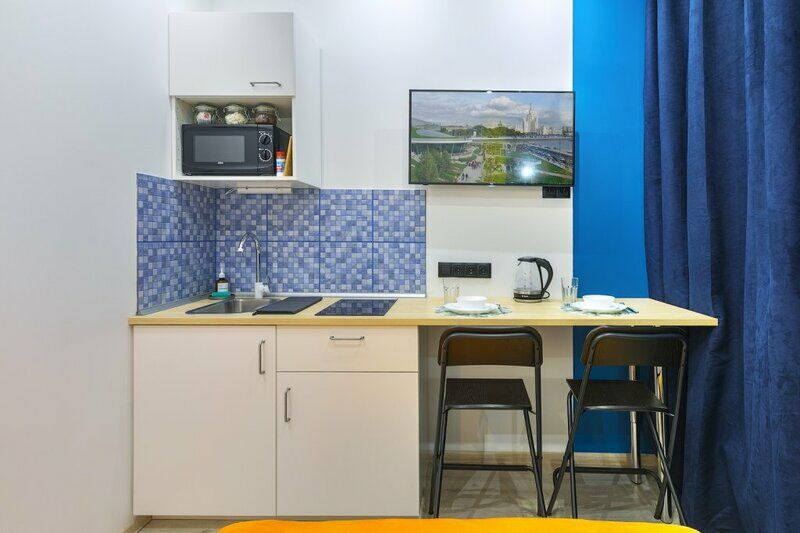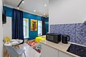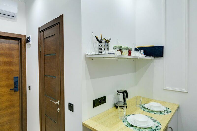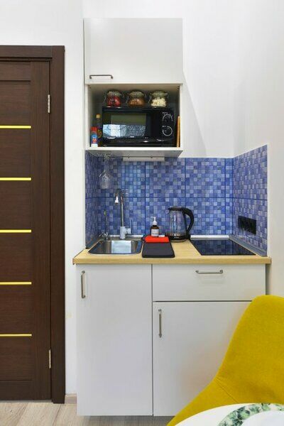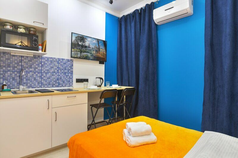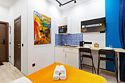 Компактная студия с сухой кухней (без мойки и плиты). Данные студии располагаются только на 1 этаже.
