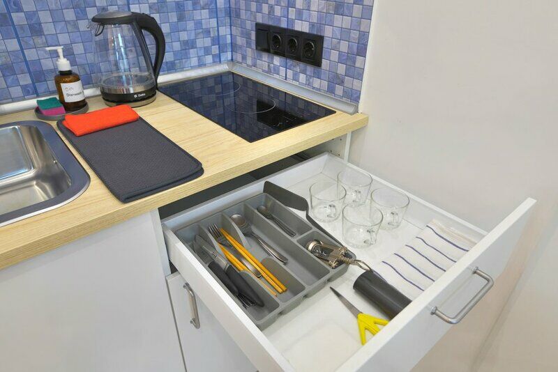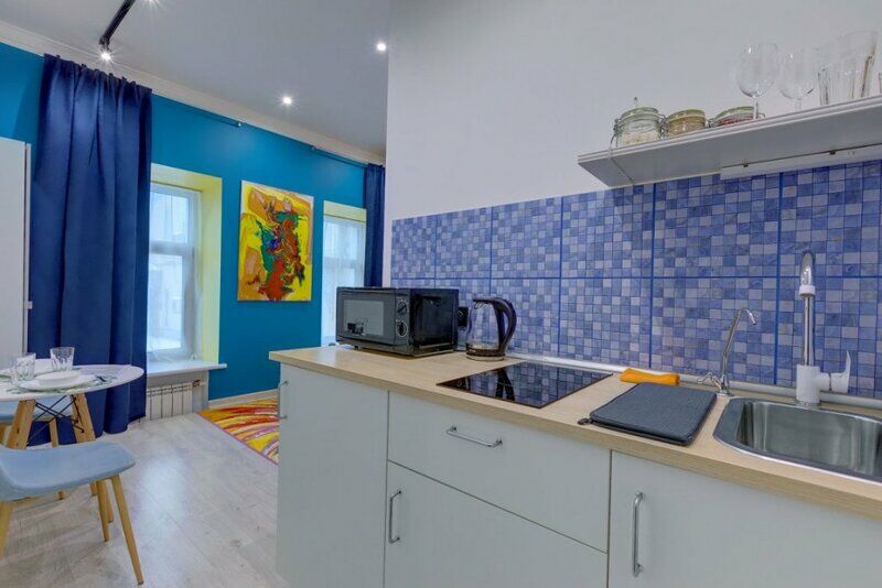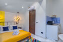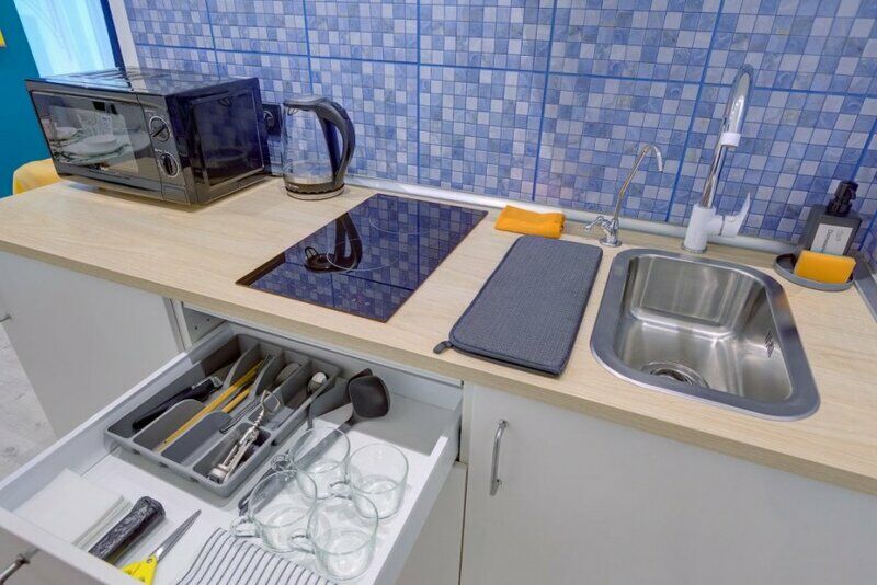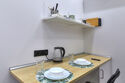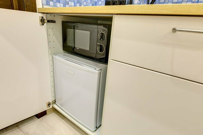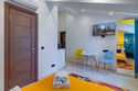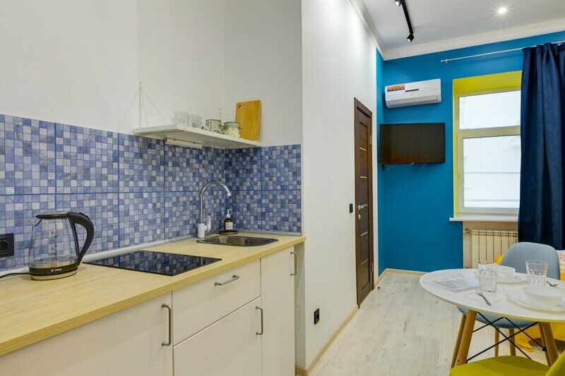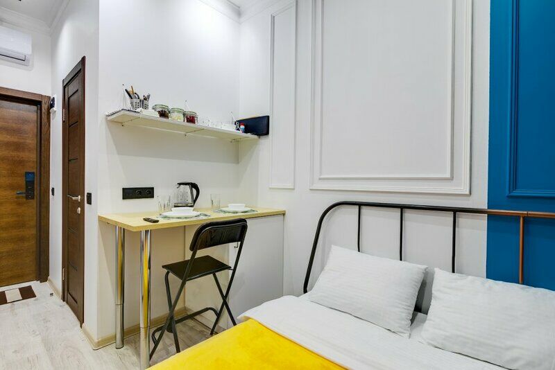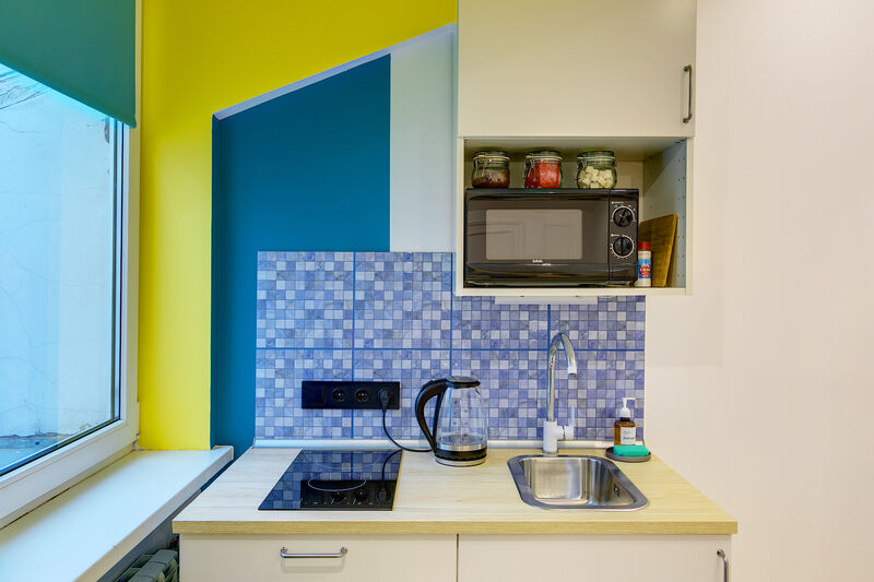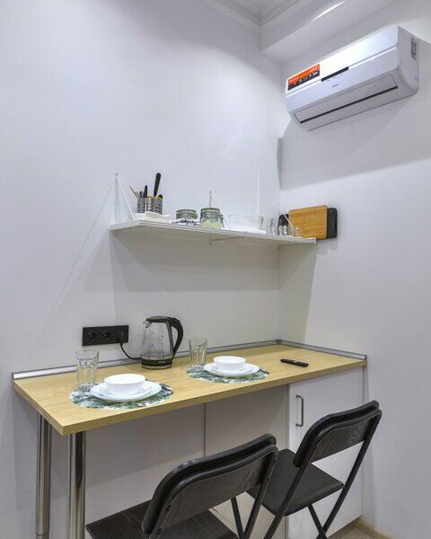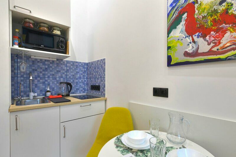 Компактная студия с сухой кухней (без мойки и плиты). Данные студии располагаются только на 1 этаже.