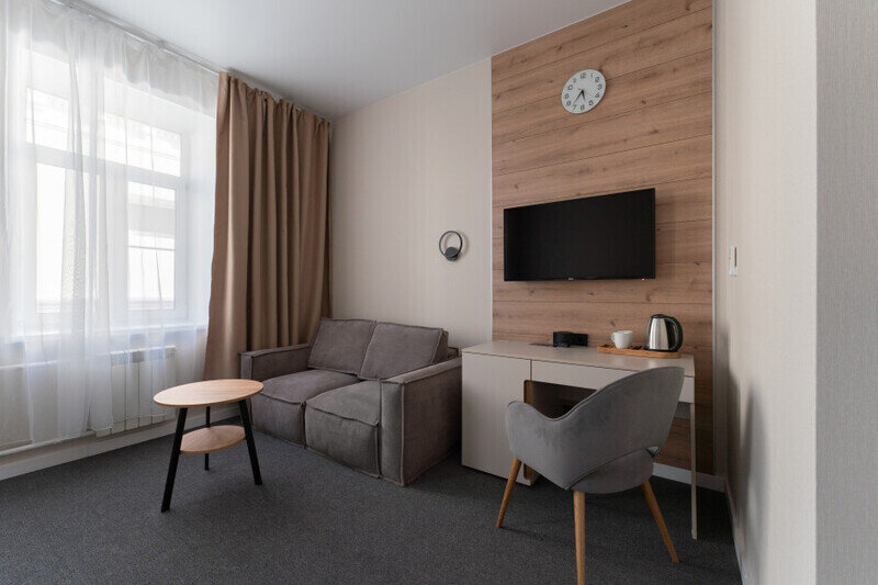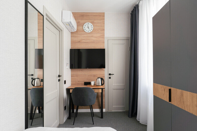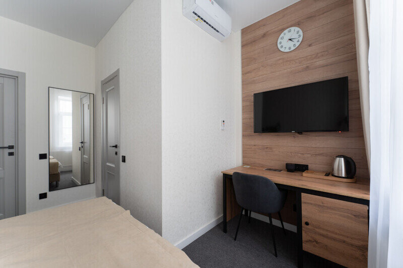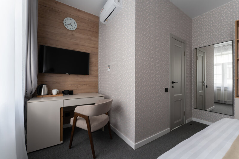 В номере: Яндекс станция Алиса с функцией инфоконсьерж, TV и аудио, wi-fi, кондиционер, сейф, холодильник, гардеробный шкаф, письменный стол, стул, душевая комната, приборы гигиенической косметики, фен, белье премиального качества.