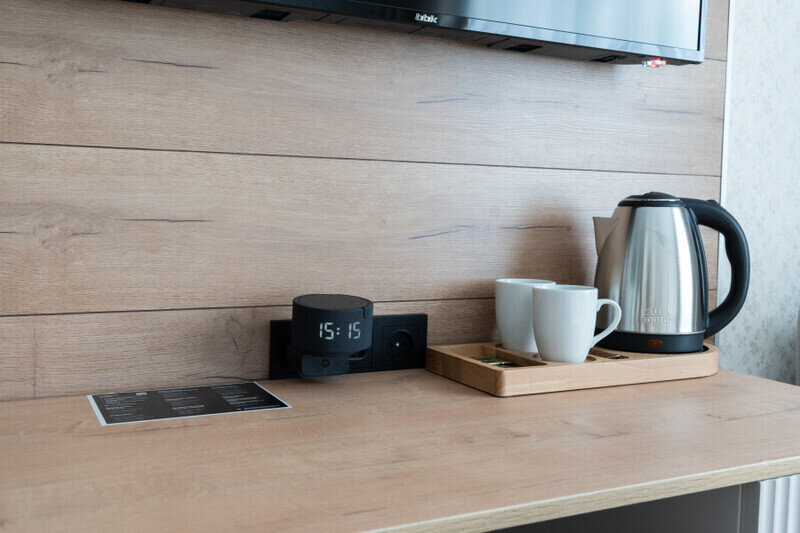 В каждом номере имеется умная колонка Алиса от Яндекс, которая станет вашим личным помощником. Она ответит на любые вопросы об отеле, поможет подключиться к Wi-Fi, включить музыку, разбудить вас в нужное время и даже подскажет, как отправить запрос администратору.