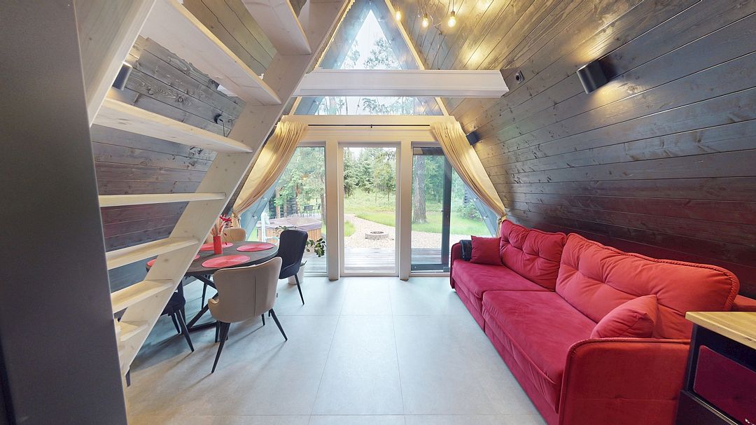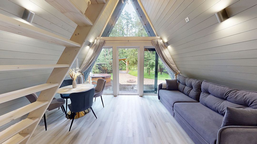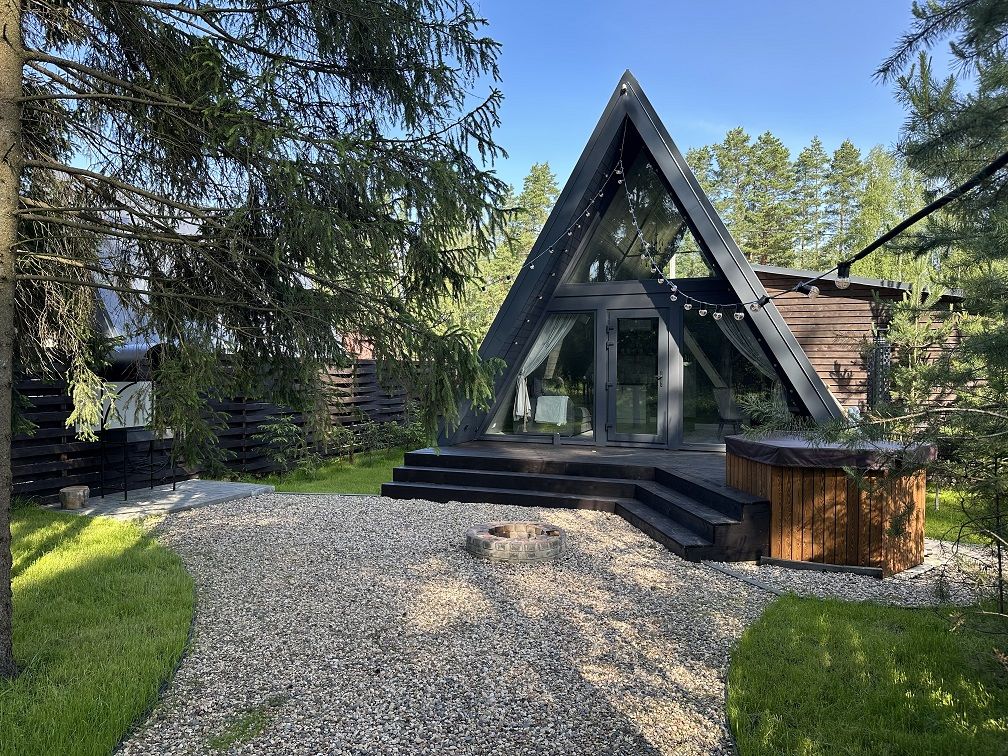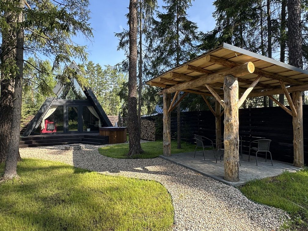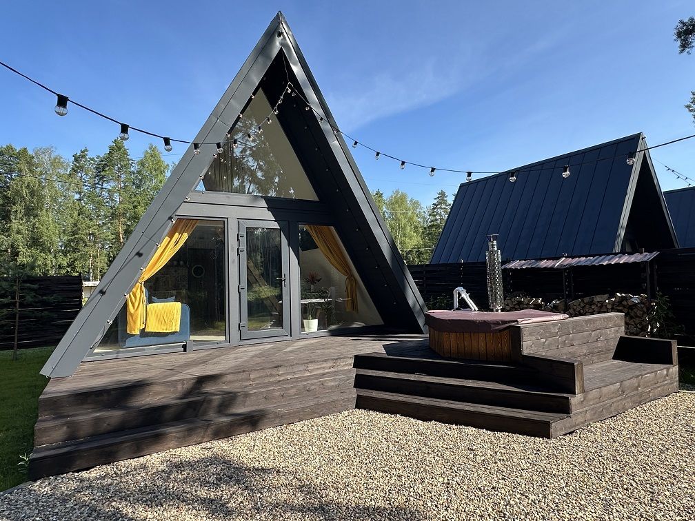 А-фрейм домики предлагают идеальное сочетание комфорта и оригинальности. Домики расположены на лесной опушке, каждый со своим участком, выходом в лес и чаном на костре – идеально для тех, кто ищет уединённое место для отдыха или романтического свидания.