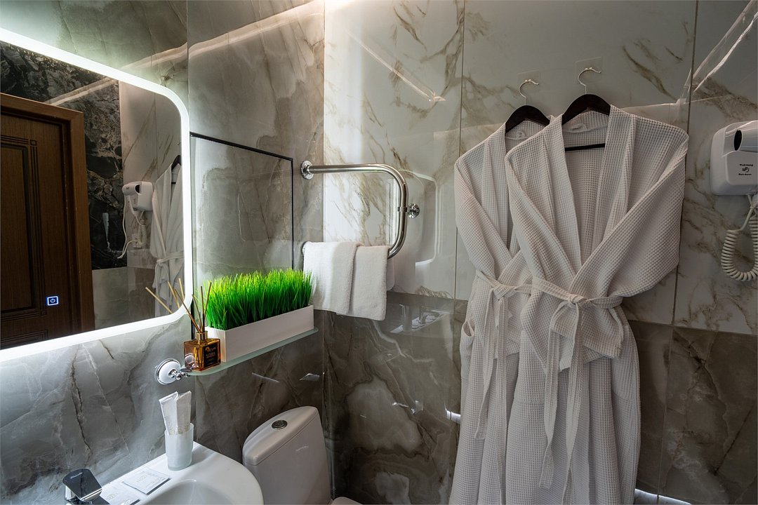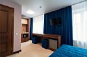 телевизор, спутниковое телевидение, Wi-Fi, кондиционер, фен, электронные замки, банные полотенца, гигиенические средства, косметические средства, две односпальные или большая двуспальная кровать, тумбы, шкаф для одежды, гардеробная, вешалки, письменный стол, зеркало, пуфики, мебельный гарнитур, чайный набор, чайник, унитаз, раковина, отопление, душ, вид на город, кулер на этаже, плиточное покрытие, стаканы, туалетный столик, туалетные средства, туалет, сплит-система, мини-холодильник, номер для некурящих, рабочий стол, уборка номера, набор для приготовления чая и кофе, услуги прачечной (платно), вешалки-плечики, мыло, затемняющая штора, зеркало в полный рост, прачечная (за дополнительную плату), комната для переговоров (за дополнительную плату)В гостиничном номере