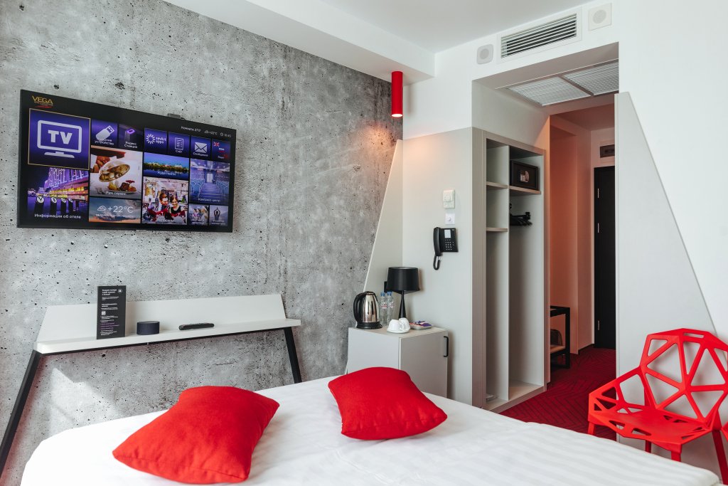 В номере гостей будет ждать телевизор. Оснащение зависит от выбранной категории номера.