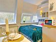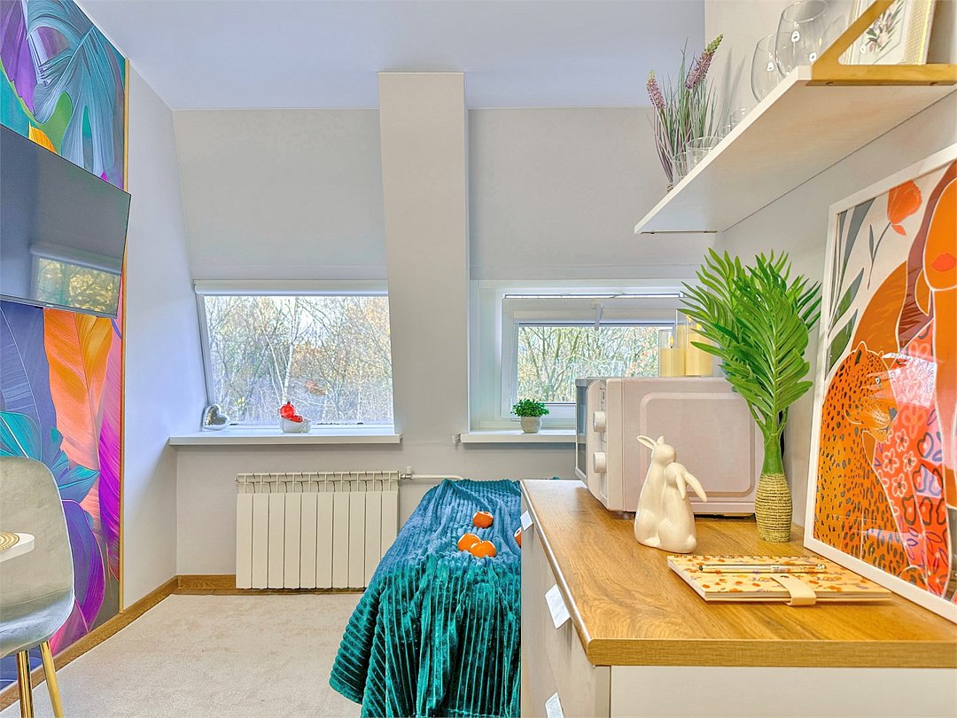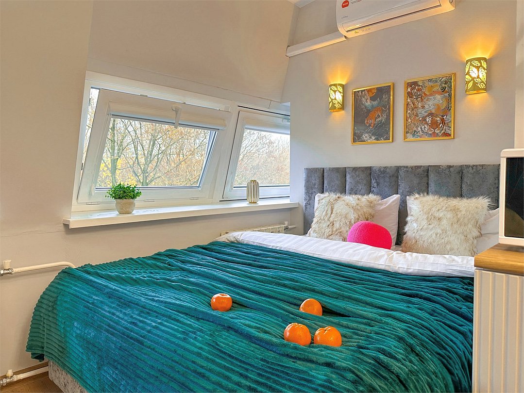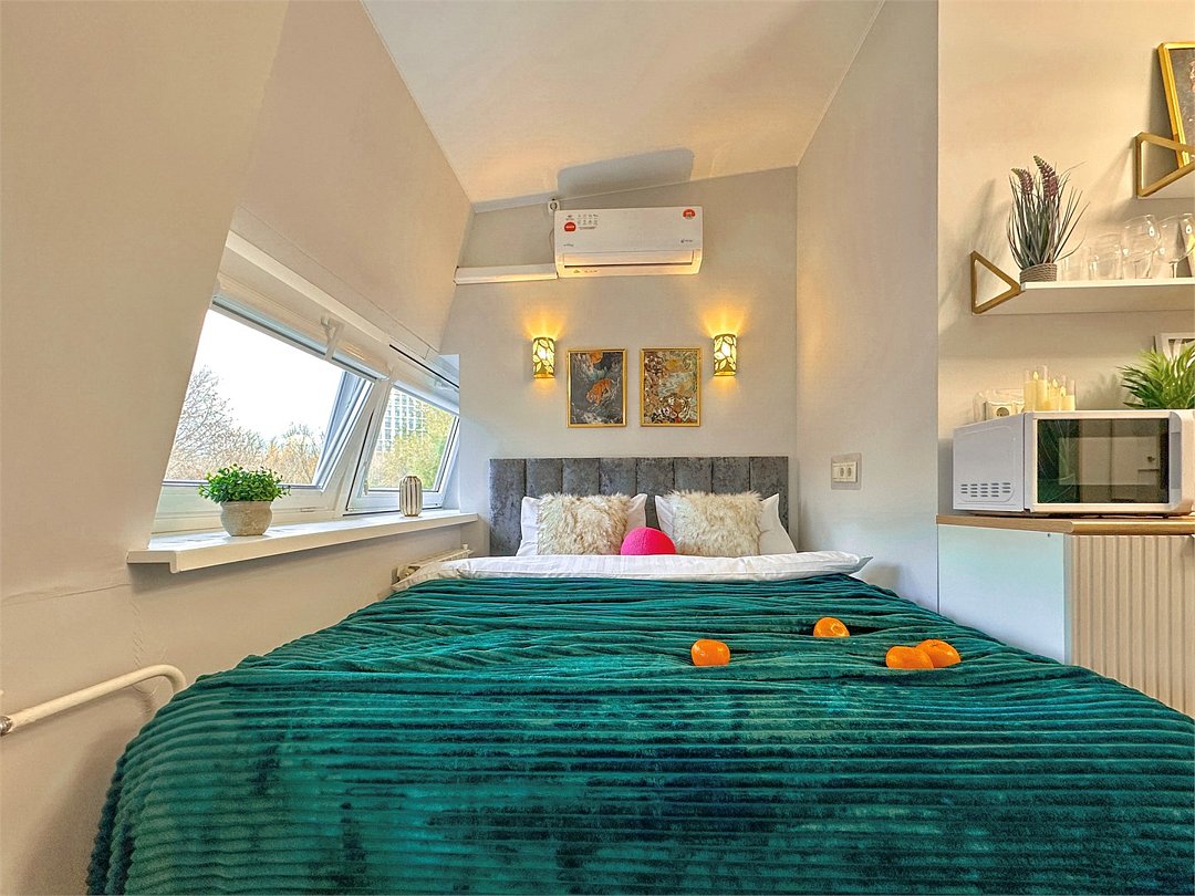 телевизор, Wi-Fi, интернет, кондиционер, светильник, фен, микроволновая печь, душевая кабина, санузел, двуспальная кровать, тумбы, стулья, шкаф для одежды, вешалки, зеркало, чайник, раковина, обеденная зона, душ, центральное кондиционирование, вид во двор, кухонная посуда, стаканы, столовые приборы, стол, туалетные средства, туалет, цифровое тв, диван-кровать, мини-холодильник, мансардные окна, номер для некурящих, вешалки-плечики, мылоВ номере