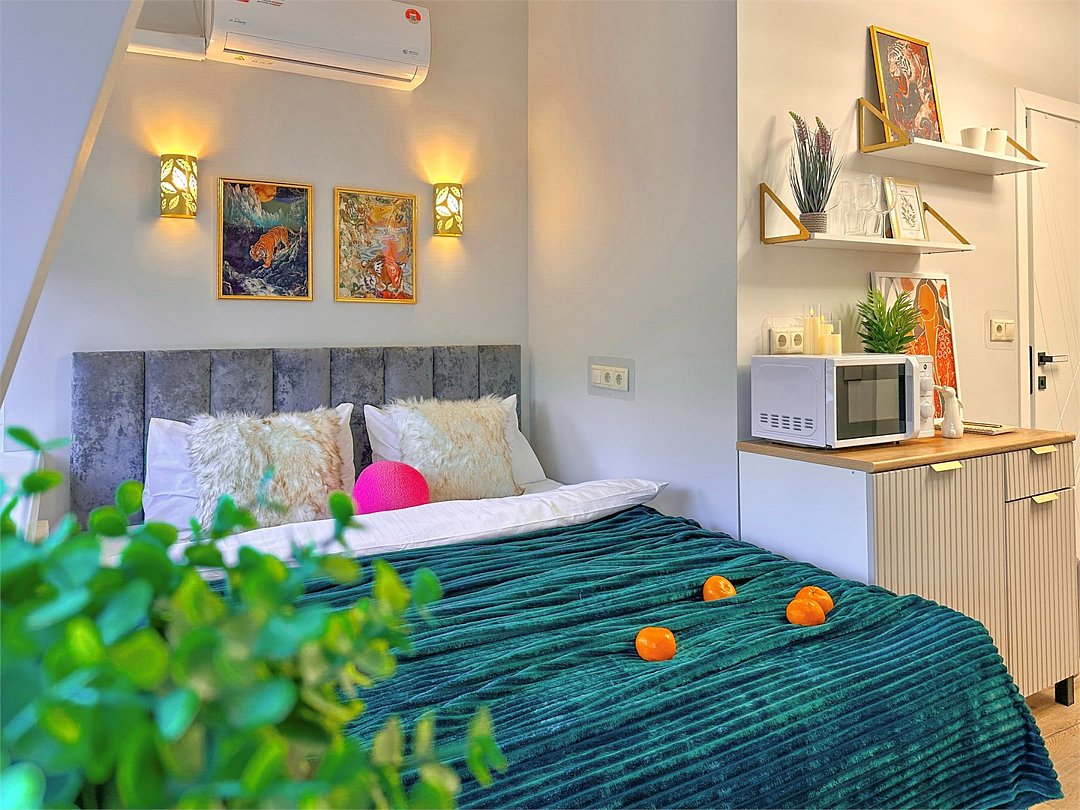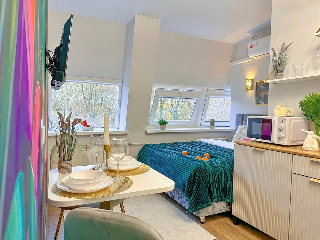Уютный номер для двоих гостей. В номере имеется собственный санузел и обеденная зона, со всем необходимым. Бронирование на категорию номерного фонда, фото могут отличаться! Для поддержания полной комплектации студии, мы вынуждены на период проживания, брать с гостей залог в символическом размере 2 000 руб., который возвращается при выезде из апартаментов, для сохранности студии и всего что в ней находится. Это позволяет нам предоставляет максимум комфорта по низким ценам! Бронирование производится на категорию, поэтому дизайн номера и расположение мебели может отличаться.Услуги и удобства