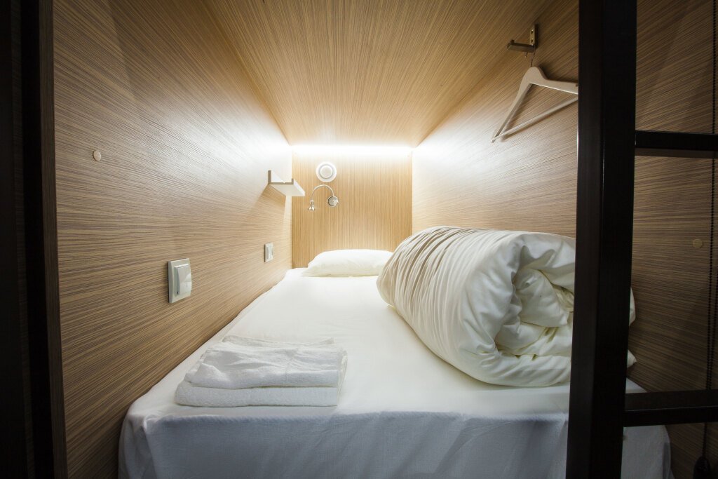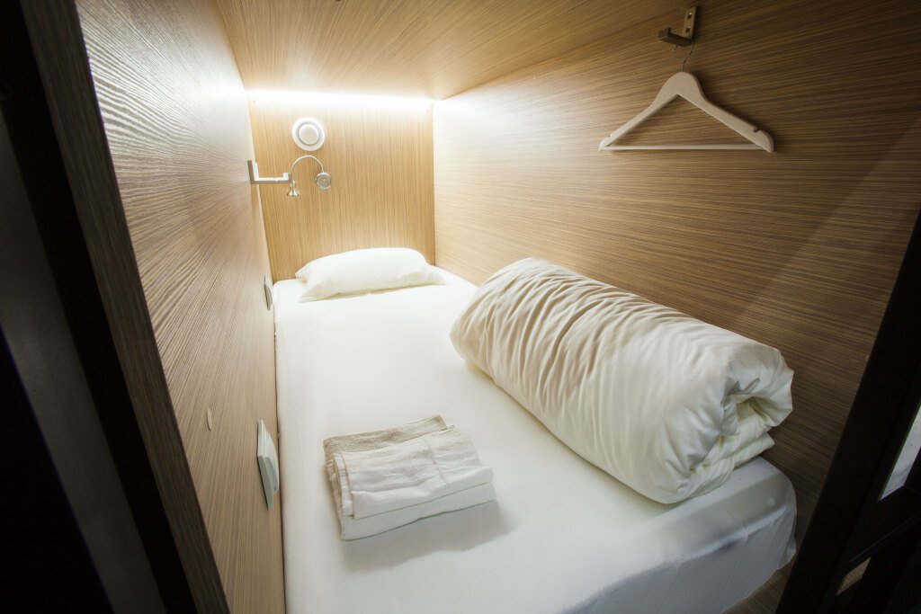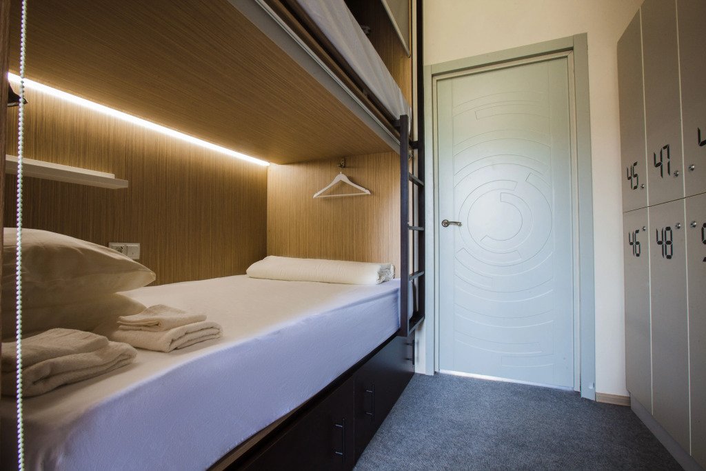 Каждая капсула оборудована индивидуальным освещением, розетками и USB, вентиляцией, полками и местом для багажа, закрывающимся на ключ. Дополнительно для каждого гостя предусмотрен шкафчик для хранения индивидуальных вещей и одежды.