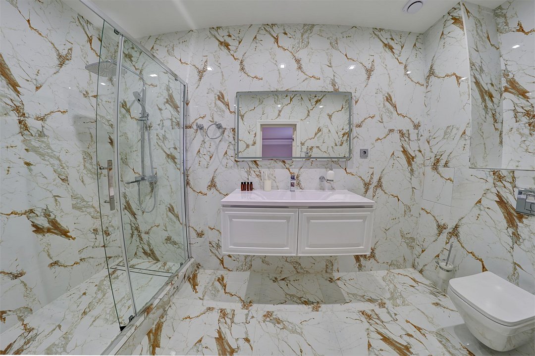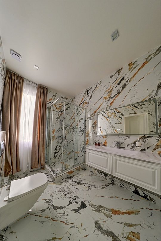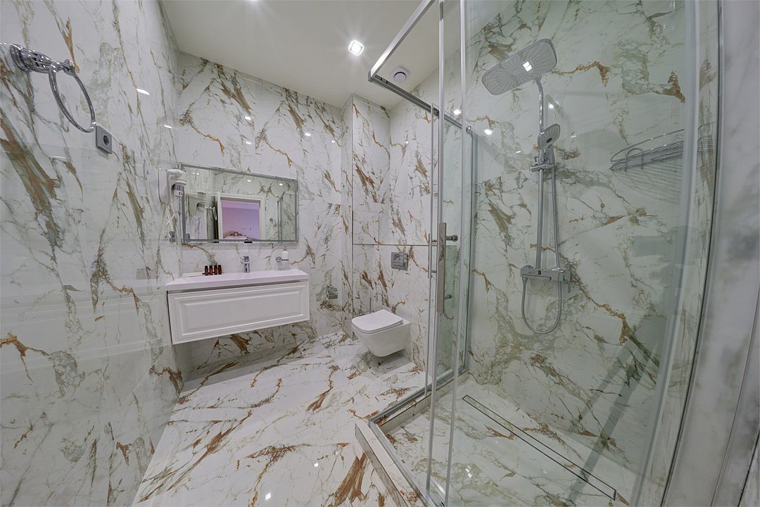 Wi-Fi, интернет, кондиционер, настольные лампы, фен, утюг, душевая кабина, теплый пол, халаты, банные полотенца, косметические средства, кровать «Queen size», гипоаллергенное белье, ортопедический матрас, кресла, шкаф для одежды, вешалки, письменный стол, зеркало, эксклюзивная мебель, мебельный гарнитур, унитаз, раковина, вид во двор, туалет, цифровое тв, телевизор с плоским экраном, гостиничная парфюмерия, телевизор со Smart TV, пуфик, туалетные принадлежности премиум-класса, вешалки-плечики, шапочка для душа, затемняющая штора, окна от пола до потолка, не раскладной диван, Android TVВ номере