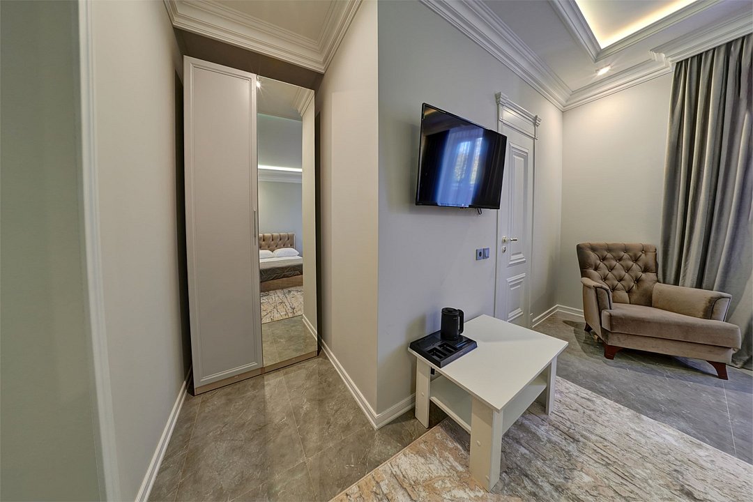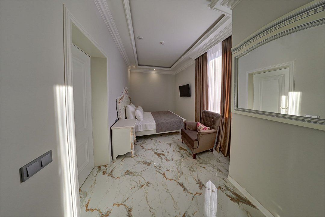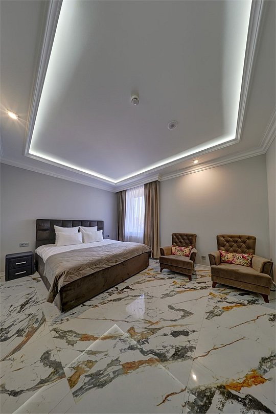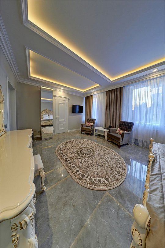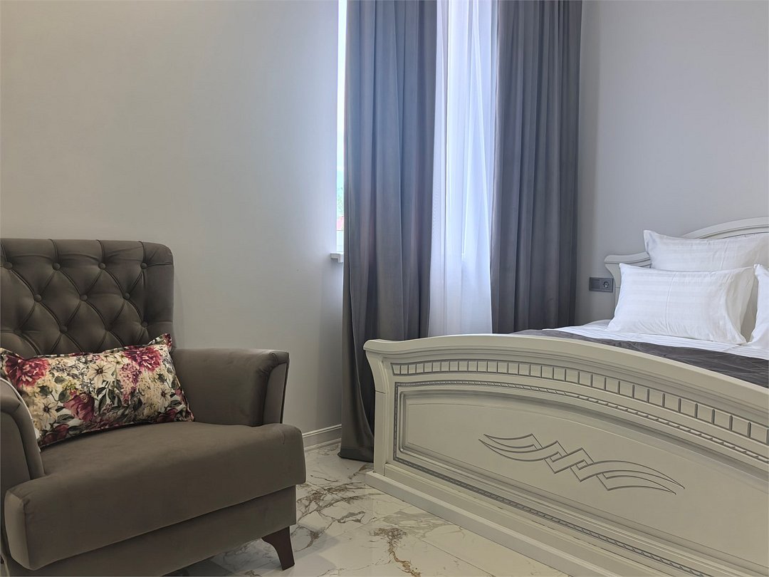 Элегантный люкс с просторной спальней, современными удобствами и изысканным интерьером. Обеспечивает высокий уровень комфорта, уютную атмосферу и все необходимые условия для отдыха и расслабления. Идеальный выбор для тех, кто ценит качество и стиль.Услуги и удобства
