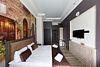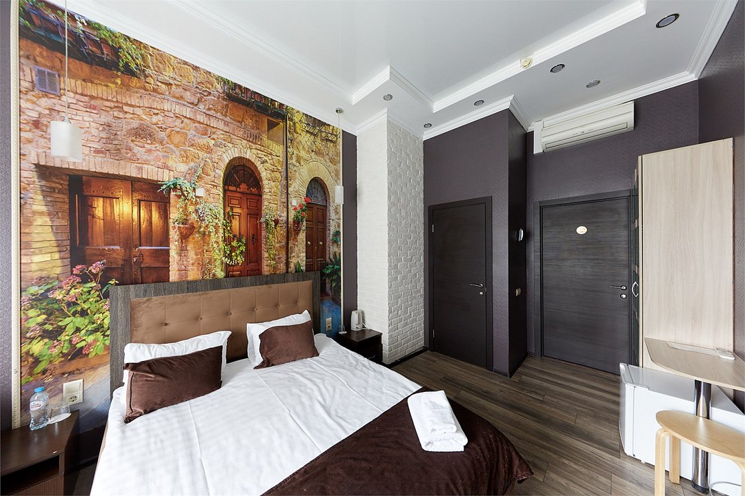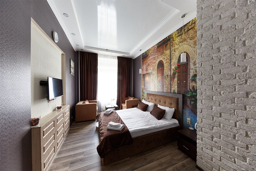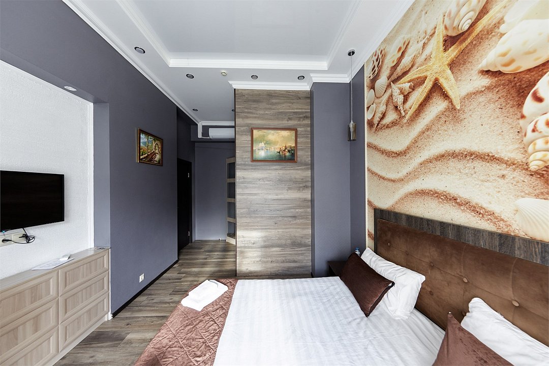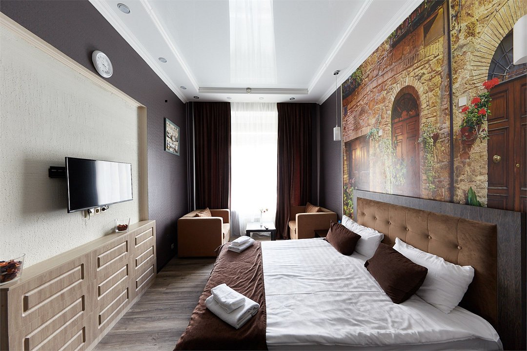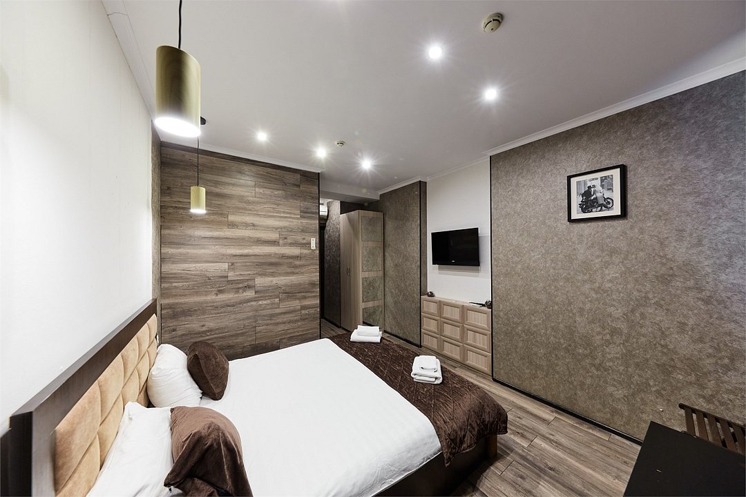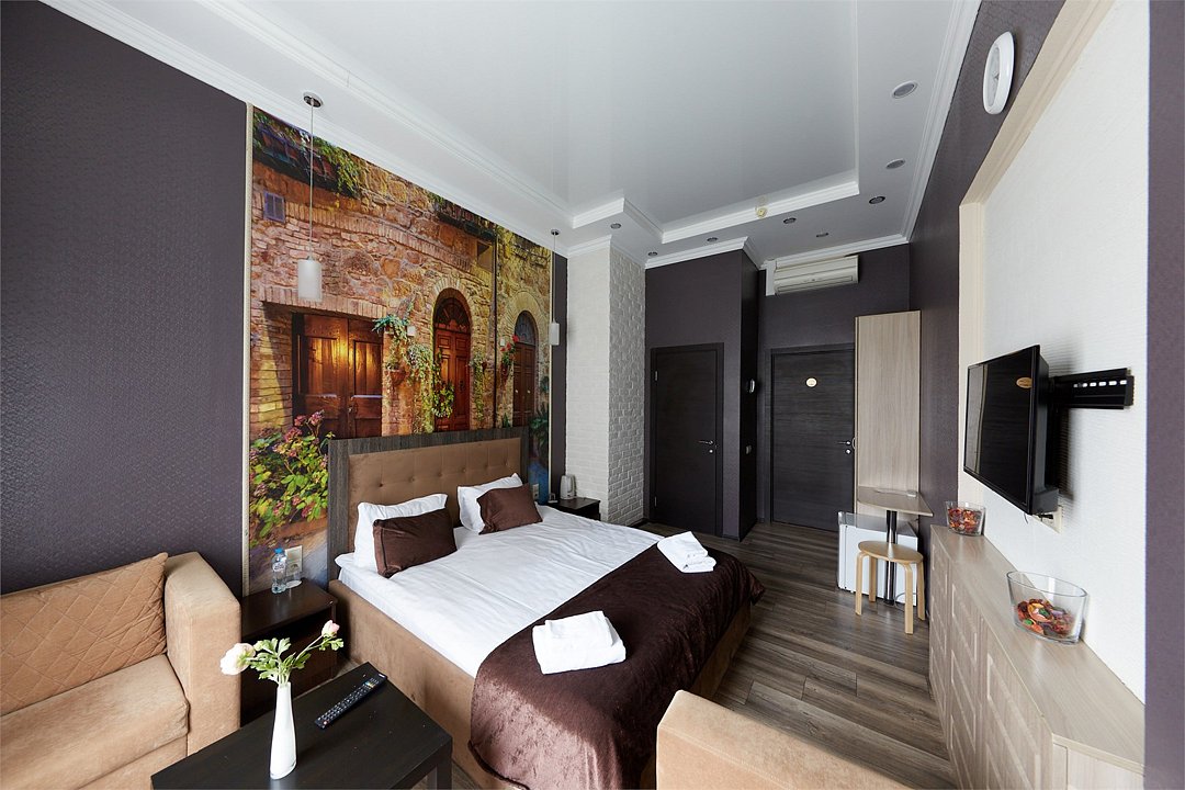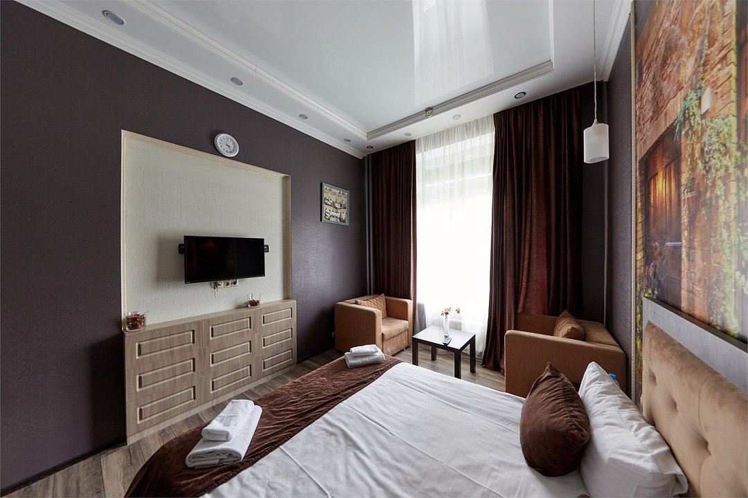 Максимально удобный и просторный номер. В номере широкая двухспальная кровать, диван, стол, прикроватные тумбочки, шкаф, холодильник, чайник, телевизор со Smart TV. В ванной комнате душевая кабина, есть фен и зеркало с подсветкой, а также бидеУслуги и удобства