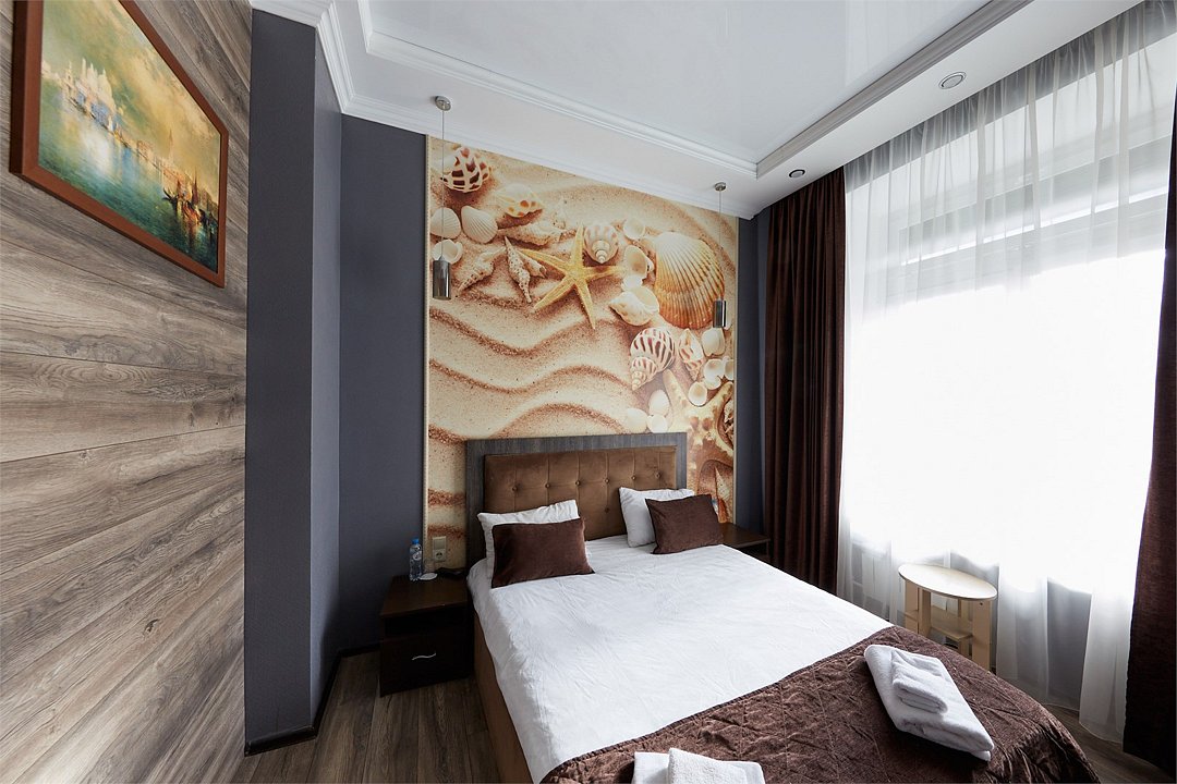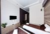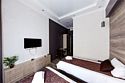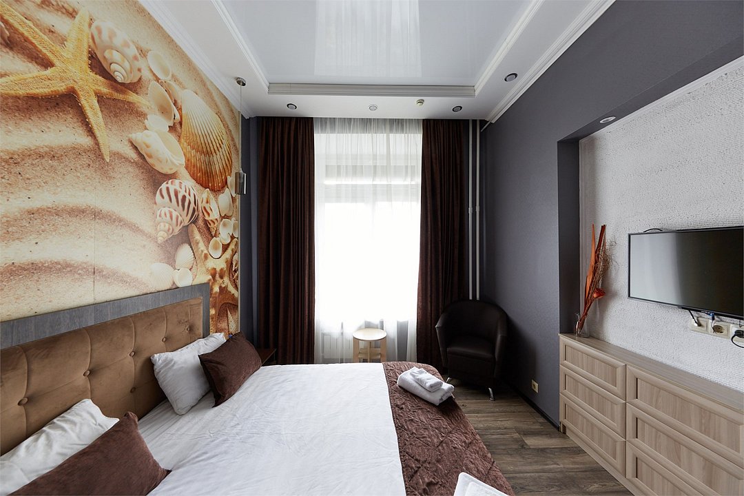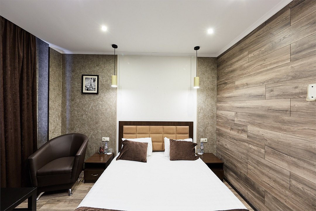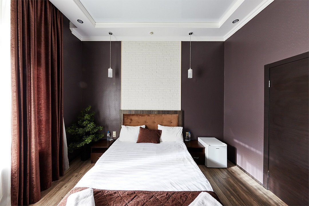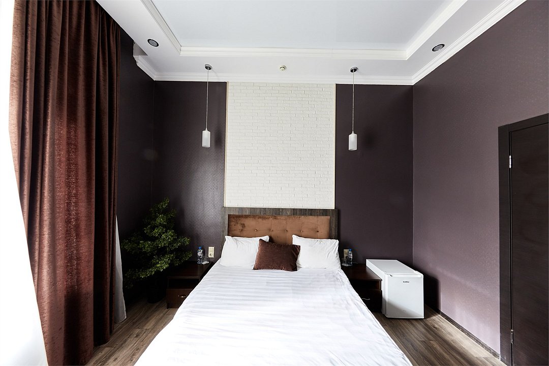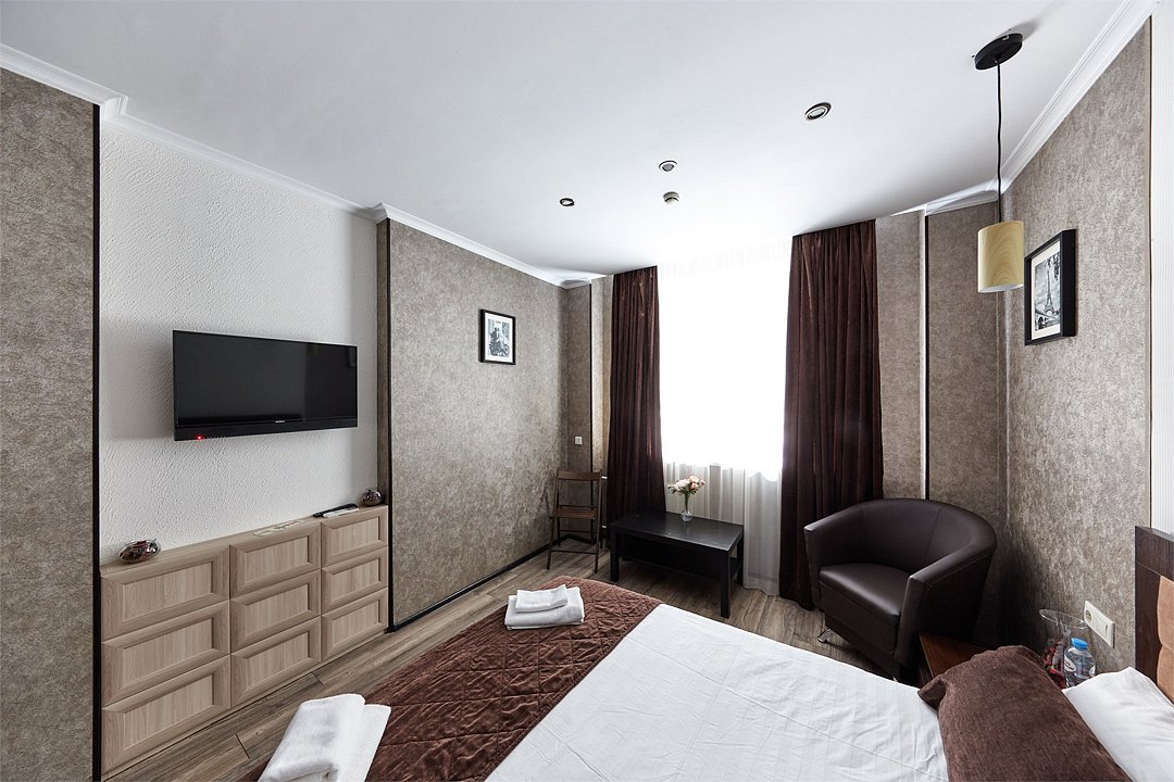 Просторный номер с двухспальной кроватью и двумя креслами. Возможно размещение дополнительного спального места. В номере есть холодильник, прикроватные тумбочки, телевизор со Smart TV, кондиционер. В ванной комнате душевая кабина, биде, фен и зеркалоУслуги и удобства