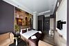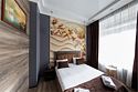 кабельное телевидение, Wi-Fi, кондиционер, светильник, фен, вентилятор, утюг, душевая кабина, санузел, биде, халаты, банные полотенца, тапочки, гигиенические средства, гладильная доска, кресла, тумбы, шкаф для одежды, зеркало, обслуживание номеров, чайник, отопление, вид на город, вид во двор, ламинат, туалетный столик, туалетные средства, мини-холодильник, телевизор со Smart TV, номер для некурящих, кровать «Super king size», уборка номера, услуги прачечной (платно), затемняющая штораВ гостиничном номере