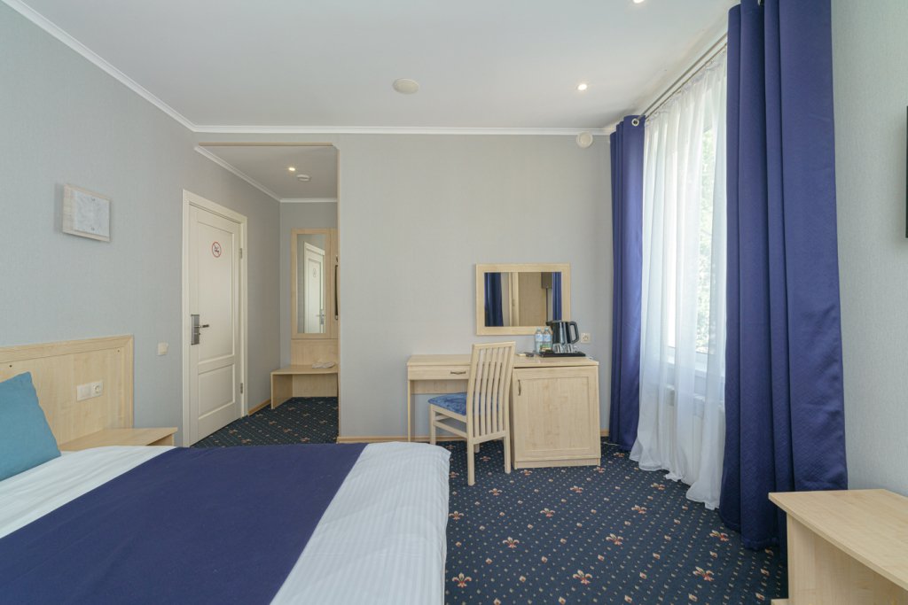 - Российским гражданам при заезде обязательно нужно иметь при себе оригинал одного из следующих документов: действующий паспорт РФ или заграничный паспорт. Стойка регистрации работает 24/7. В случае заезда после 00:00 необходимо заранее предупредить отель и получить инструкции по заселению. Контактная информация указана в подтверждении бронирования. В двухместном номере «Эконом» для размещения гостей предусмотрена полуторная кровать.