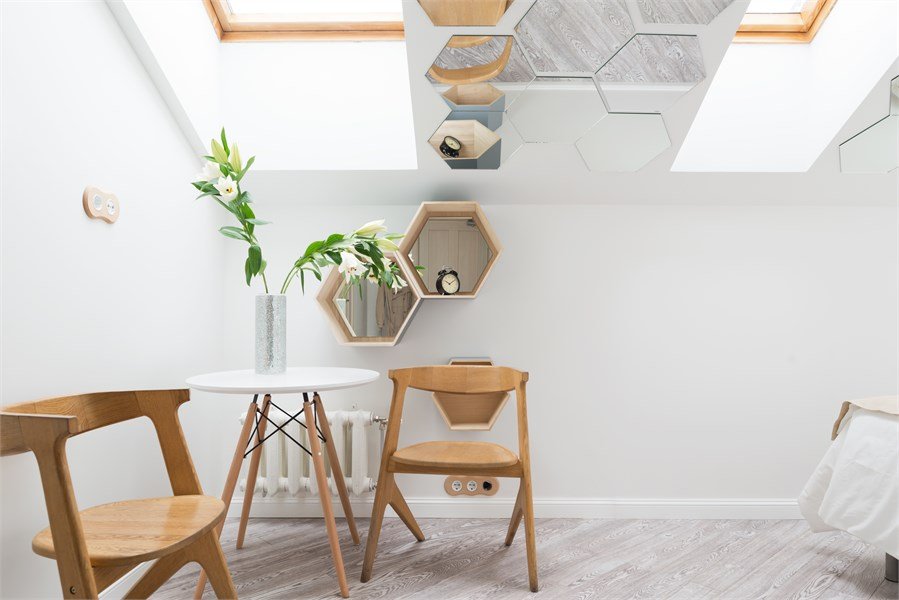 интерактивное телевидение, Wi-Fi, интернет, телефон, кондиционер, светильник, настольные лампы, фен, электронные замки, банные полотенца, тапочки, гигиенические средства, полутораспальная кровать, стулья, вешалки, зеркало, обслуживание номеров, унитаз, раковина, питьевая вода, душ, вид во двор, стаканы, стол, туалет, телевизор с плоским экраном, мансардные окна, телевизор со Smart TV, номер для некурящих, usb портВ номере