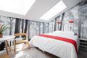 интерактивное телевидение, Wi-Fi, интернет, телефон, кондиционер, светильник, настольные лампы, фен, электронные замки, банные полотенца, тапочки, гигиенические средства, две односпальные кровати, тумбы, стулья, вешалки, зеркало, унитаз, раковина, питьевая вода, отопление, душ, вид во двор, стаканы, стол, телевизор с плоским экраном, мансардные окна, телевизор со Smart TV, номер для некурящих, usb портВ номере