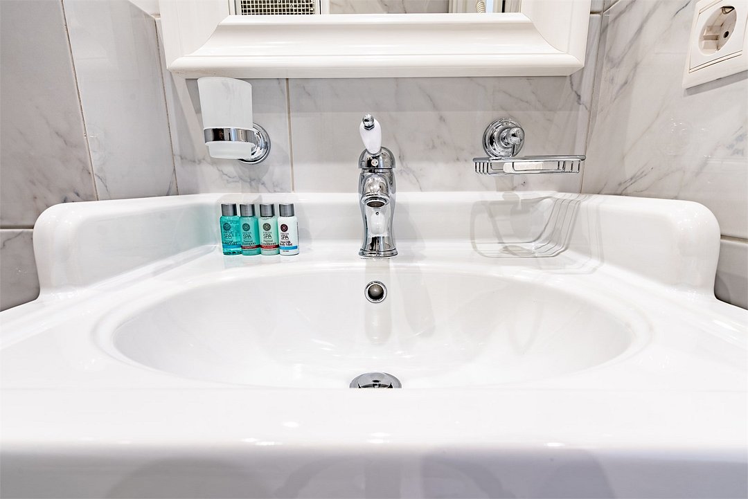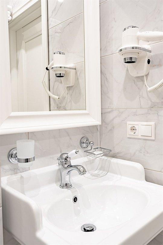 спутниковое телевидение, Wi-Fi, светильник, фен, весы, утюг, халаты, тапочки, гигиенические средства, кровать «Queen size», шкаф для одежды, вешалки, багажная тумба, зеркало, эксклюзивная мебель, звуконепроницаемые стены и окна, мини-бар, свежая пресса, информационная карта, меню, сейф, унитаз, раковина, питьевая вода, гостиная зона, отопление, душ, вид на город, кулер на этаже, паркет, высокие потолки, стаканы, кухонная утварь, стиральная машина и сушилка, тумба, сплит-система, мини-холодильник, мини-кухня, гостиничная парфюмерия, телевизор со Smart TV, номер для некурящихВ гостиничном номере