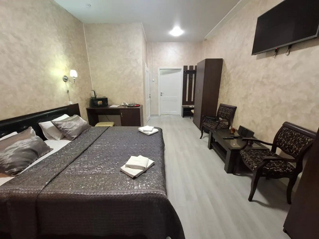 В номере вы найдёте телевизор и халат. Перечисленные услуги есть не во всех номерах.