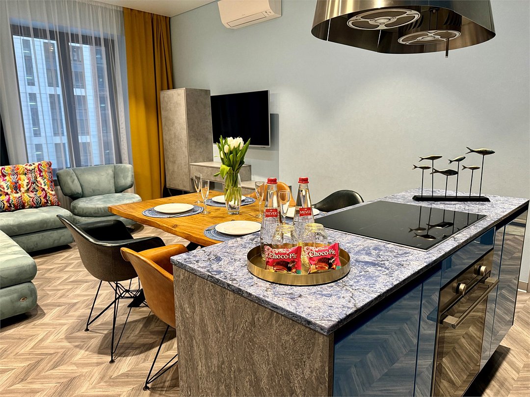 два телевизора, Wi-Fi, интернет, холодильник, кондиционер, светильник, настольные лампы, фен, электронные замки, плита для приготовления пищи, кофемашина, микроволновая печь, утюг, ванная комната, душевая кабина, ванна или душевая кабина, ванная с джакузи, гидромассажная ванна, водонагреватель, халаты, банные полотенца, тапочки, гигиенические средства, балкон с красивым видом, кровать «King size», гладильная доска, диван, стулья, шкаф для одежды, зеркало, комод, пуфики, кухня, набор посуды, посудомоечная машина, стиральная машина, чайник, унитаз, раковина, питьевая вода, обеденная зона, гостиная зона, отопление, три комнаты, плиточное покрытие, две спальни, тостер, кухонная посуда, стаканы, кухонная утварь, столовые приборы, стиральная машина и сушилка, стул, стол, туалетные средства, сушилка для белья, диван-кровать, раскладной диван, москитная сетка, шкаф-купе, телевизор со Smart TV, теплые полы, номер для некурящих, онлайн-регистрация до заезда, система умный дом, духовой шкаф, двуспальный раскладной диван-кровать, межкомнатная дверь, вешалки-плечики, бутилированная вода, мыло, кофеварка, затемняющая штора, окна от пола до потолка, самостоятельная регистрация, онлайн-регистрация, дождевой и ручной душВ апартаментах