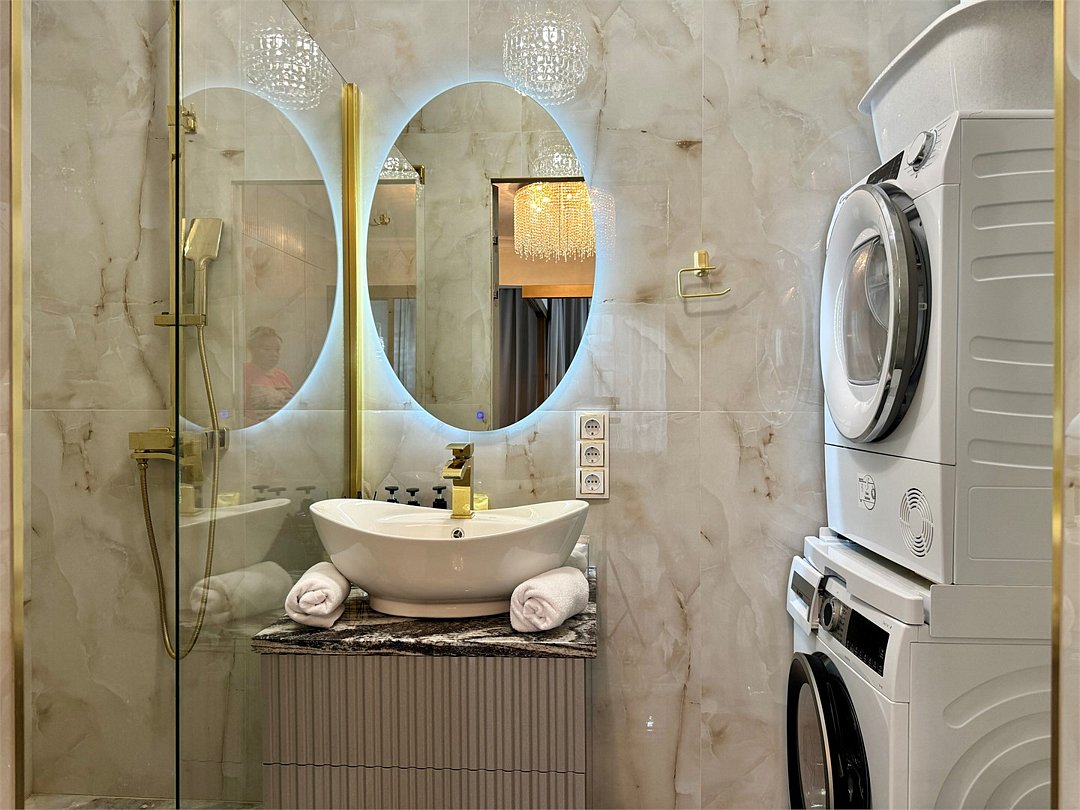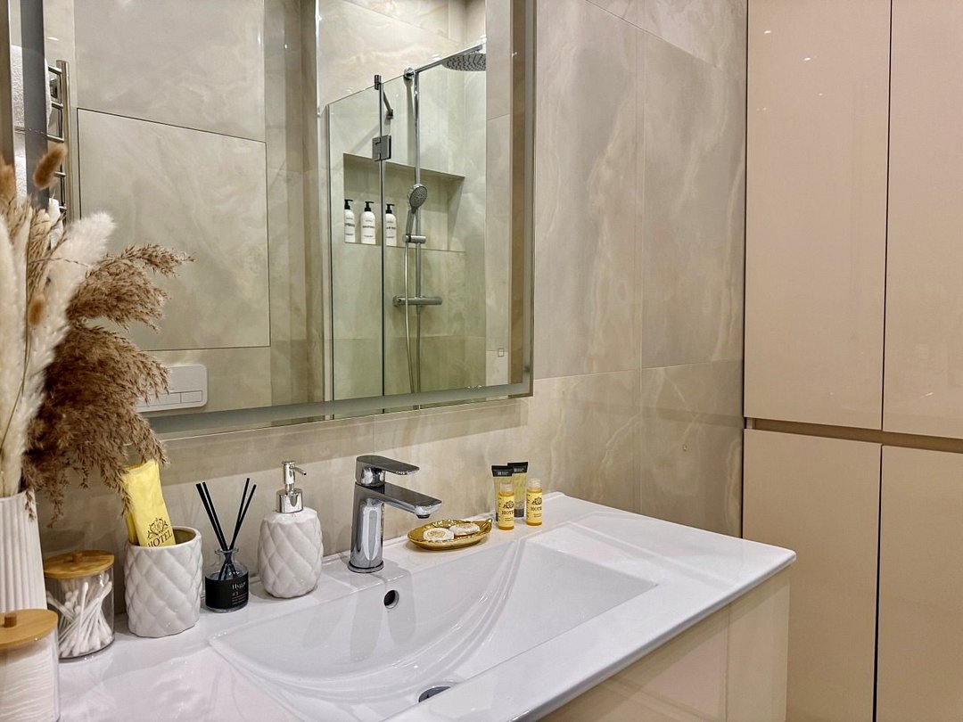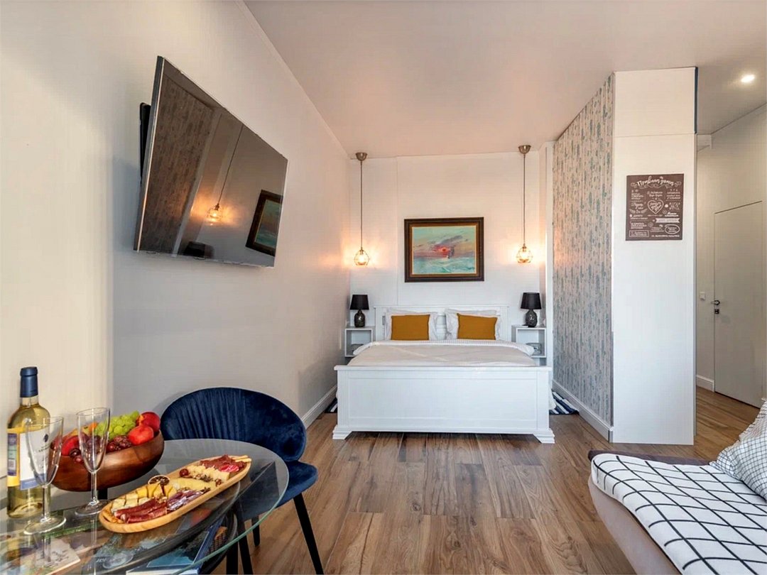 телевизор, Wi-Fi, интернет, холодильник, кондиционер, светильник, настольные лампы, фен, система безопасности, электронные замки, плита для приготовления пищи, кофемашина, микроволновая печь, утюг, душевая кабина, водонагреватель, банные полотенца, тапочки, балкон с красивым видом, кровать «King size», диван, стулья, шкаф для одежды, зеркало, кухня, набор посуды, посудомоечная машина, стиральная машина, чайник, унитаз, питьевая вода, обеденная зона, отопление, душ, плиточное покрытие, кресло, ламинат, тостер, кухонная посуда, стаканы, столовые приборы, стиральная машина и сушилка, стул, стол, тумба, туалетные средства, туалет, сушилка для белья, диван-кровать, раскладной диван, москитная сетка, шкаф-купе, телевизор со Smart TV, теплые полы, номер для некурящих, рабочий стол, онлайн-регистрация до заезда, система умный дом, духовой шкаф, вешалки-плечики, бутилированная вода, мыло, кофеварка, затемняющая штора, самостоятельная регистрация, дождевой и ручной душВ апартаментах