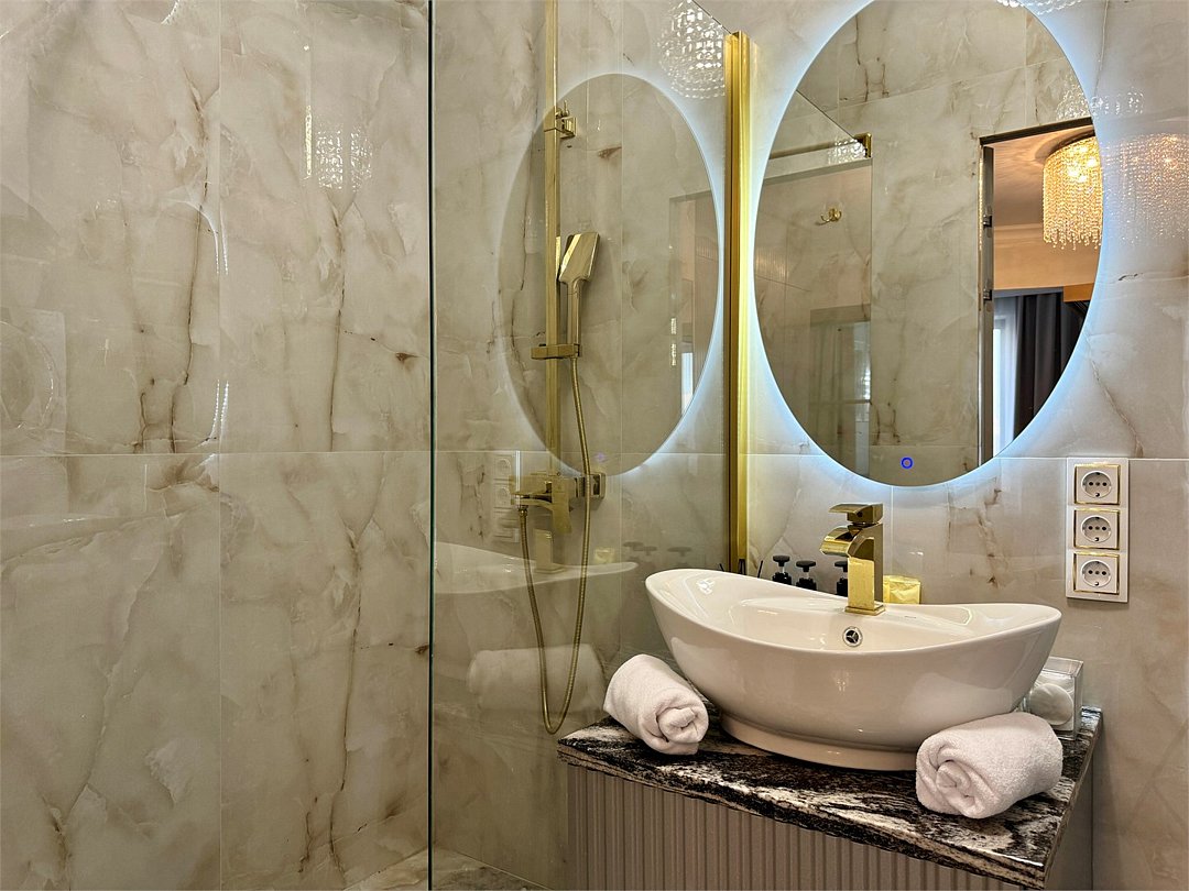 Wi-Fi, интернет, холодильник, кондиционер, светильник, фен, система безопасности, электронные замки, плита для приготовления пищи, кофемашина, микроволновая печь, утюг, душевая кабина, банные полотенца, тапочки, гигиенические средства, балкон с красивым видом, кровать «Queen size», ортопедический матрас, шкаф для одежды, зеркало, унитаз, раковина, стул, стол, тумба, туалетные средства, туалет, шкаф-купе, телевизор со Smart TV, система умный дом, гигиенический душ, вешалки-плечики, мыло, кофеварка, затемняющая штора, дождевой и ручной душ, раскладная одноместная кроватьВ апартаментах