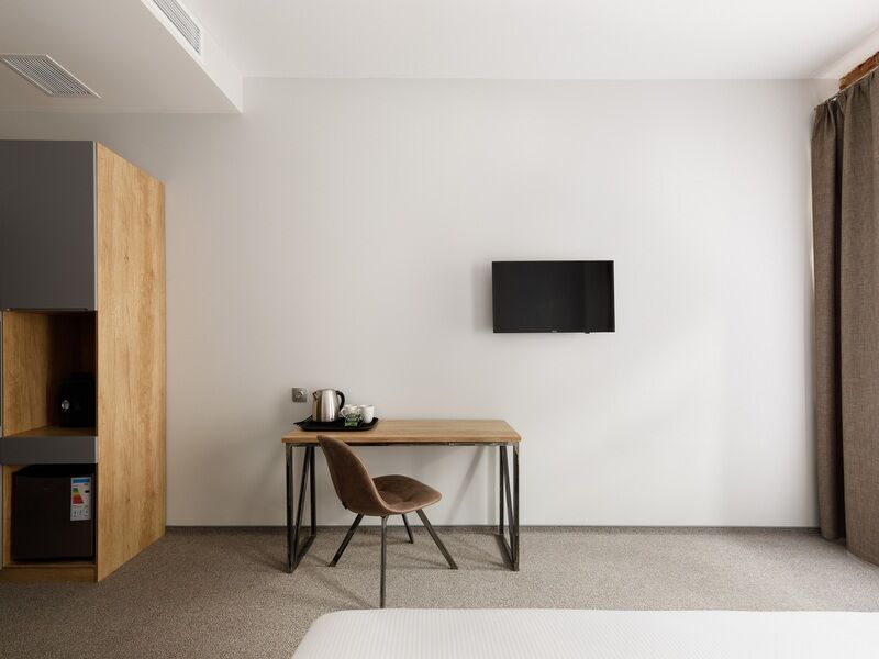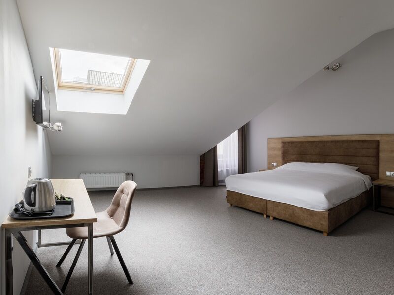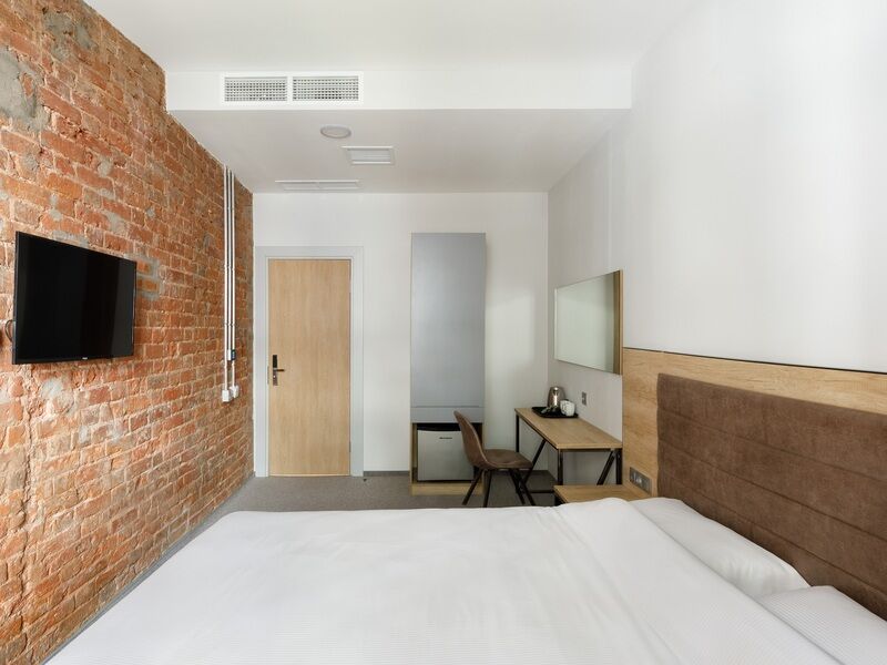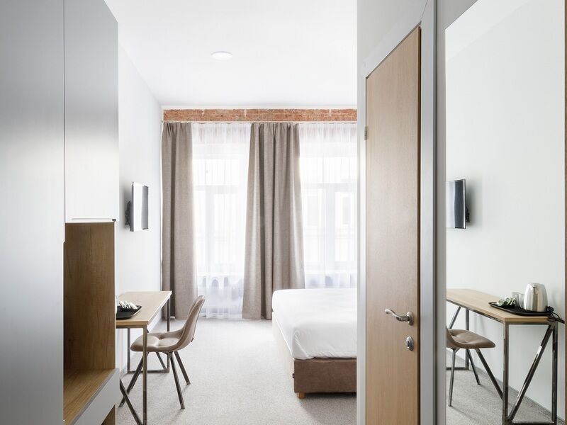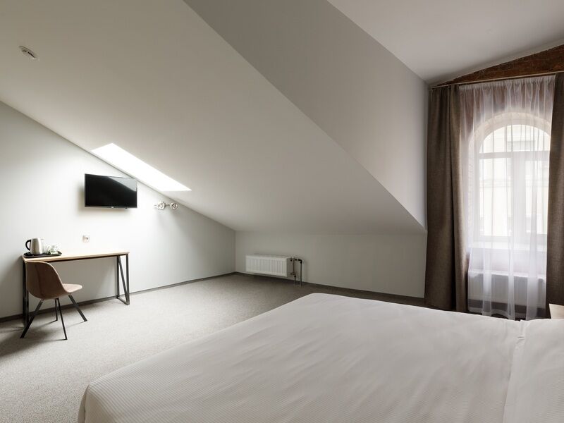 Отель занимает трехэтажное здание в историческом особняке XIX века, расположенном рядом с зеленым сквером на Петровском бульваре. Здесь гостям предлагается 29 уютных двухместных номеров, оформленных в элегантном и лаконичном стиле со светлыми тонами. На мансардном этаже располагаются номера эконом-класса в стиле лофт. Каждый номер оборудован сплит-системой, имеет собственный душ, а также необходимую мебель и технику: телевизор, электрочайник и фен.